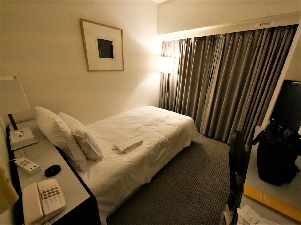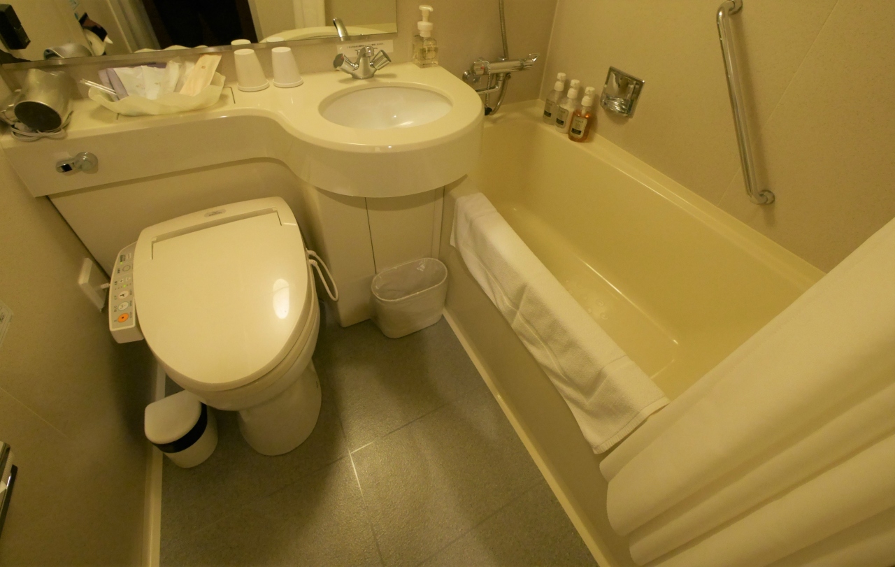 ベッドは広いが,周りが狭いのも私はあまり好きでない ベッドが狭くてもトランクを開けるスペースが十分あったほうがいい バスは若干狭いがシティホテル水準 真下にファミマがあるので便利だった.