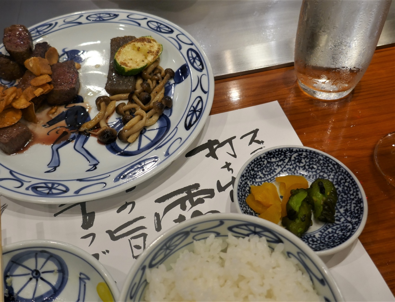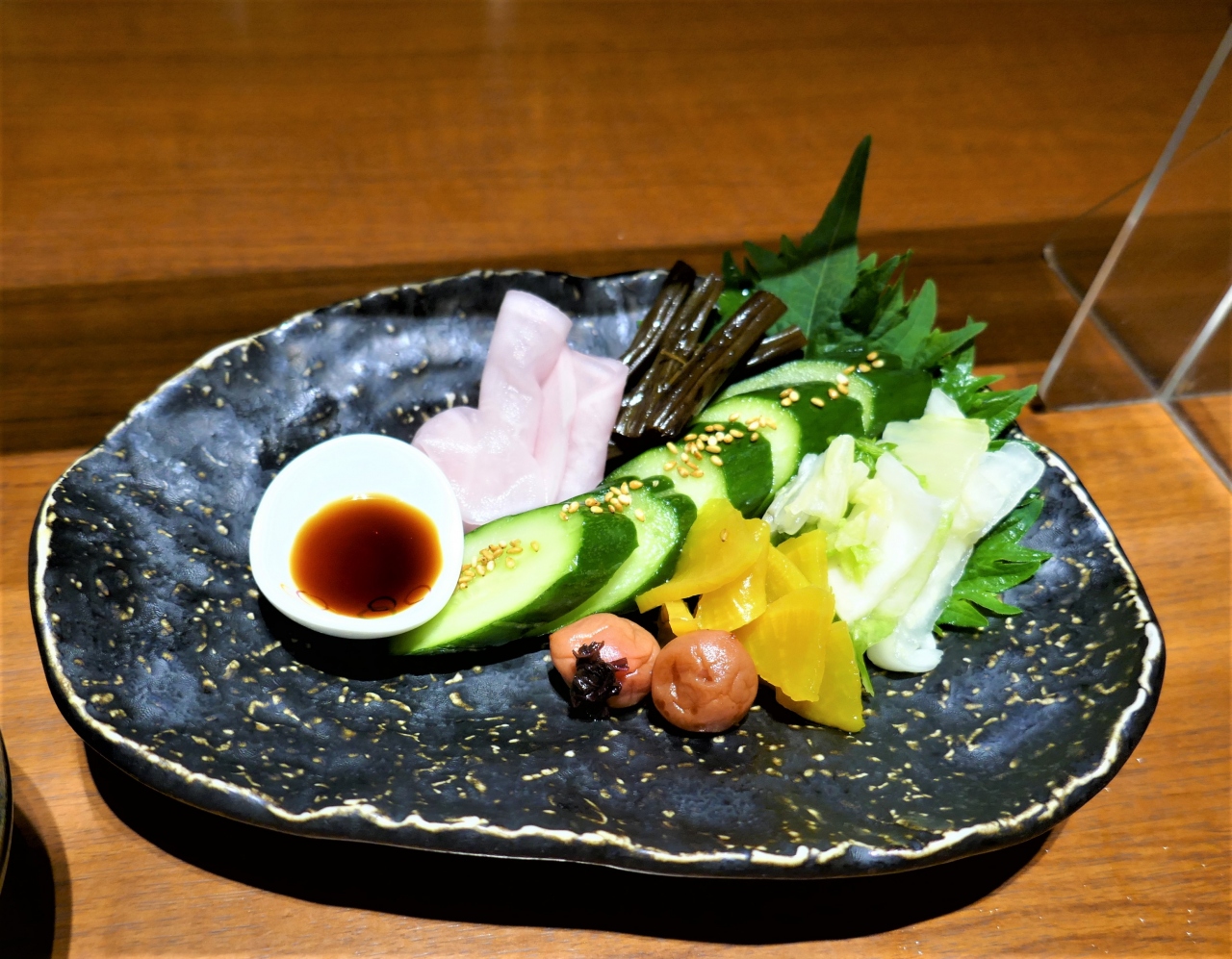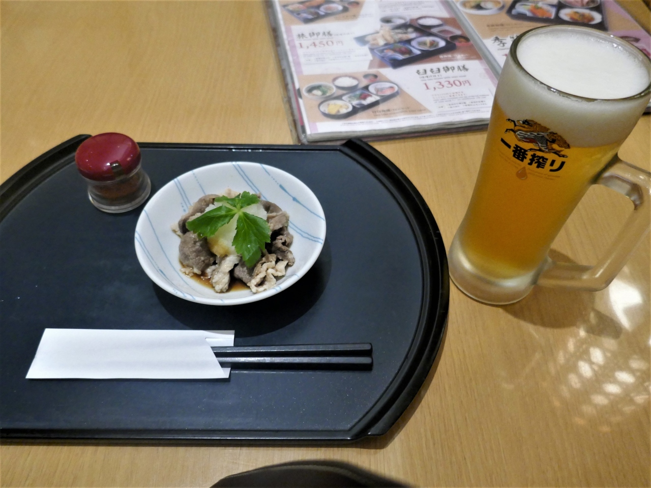 生中 500円 付け出し300円 税別 漬物盛り合わせ 650円 おつくり3種 1050円 揚げだし豆腐 400円 やまと豚の土鍋チャーハン730円にした.肉まで手が回らなかった- 旅行時期