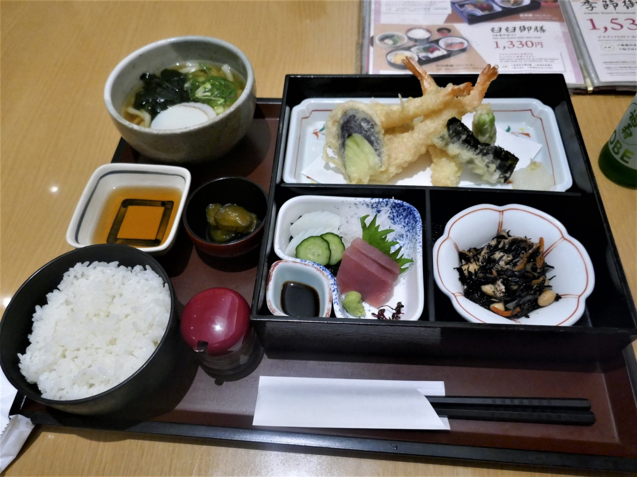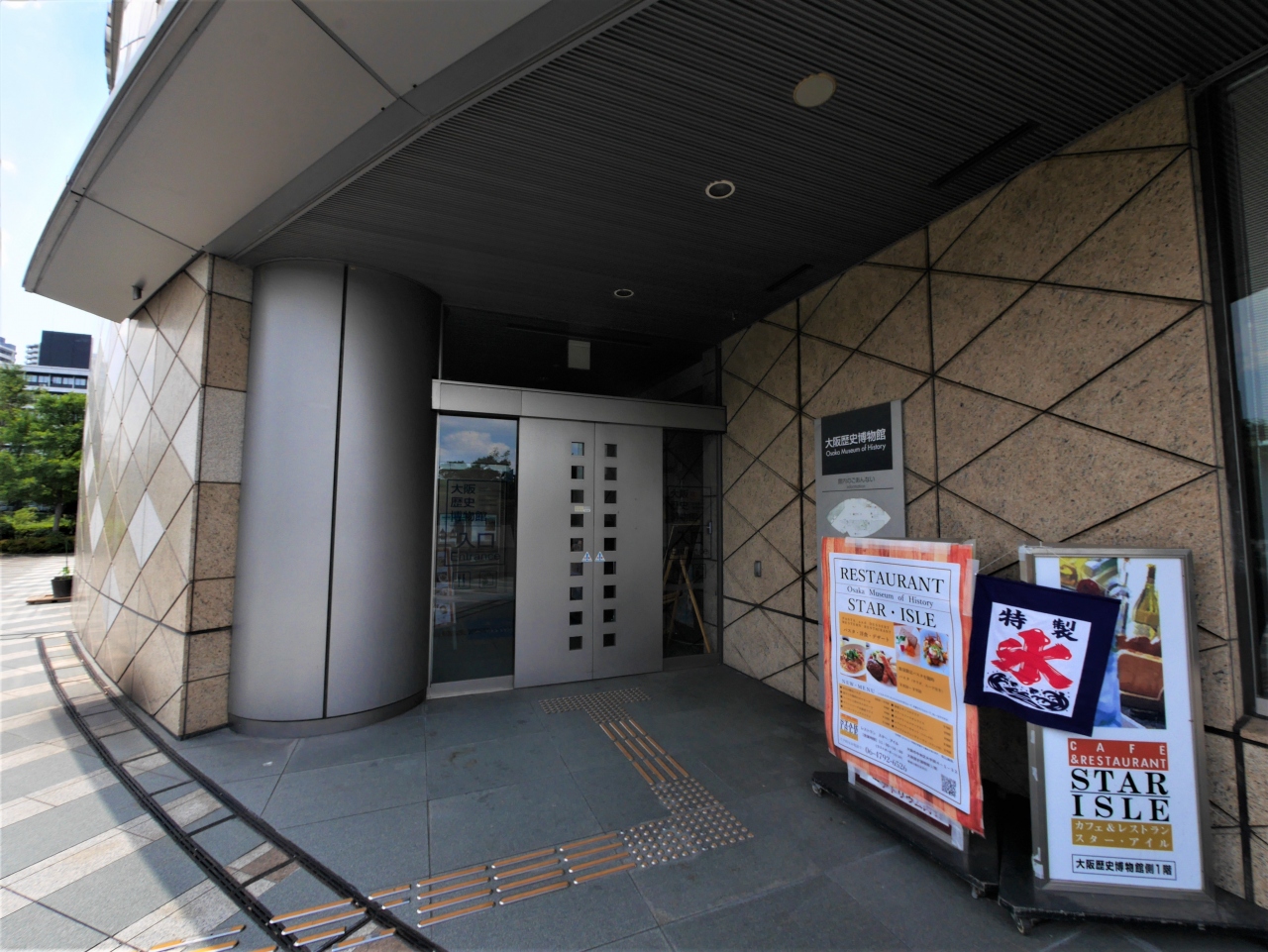暑いのでビール 小瓶で600円 本日のランチはポークカツだった カップスープ付き ごはん大盛無料 1100円 まあ普通のランチかな 大阪歴史博物館のビルの一階にあるので便利 見学の前後や合間に昼食や,お茶ができる.割と空いていたのでゆっくりできた