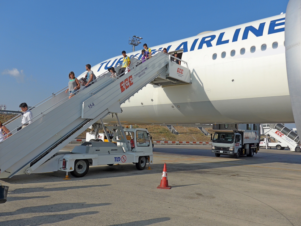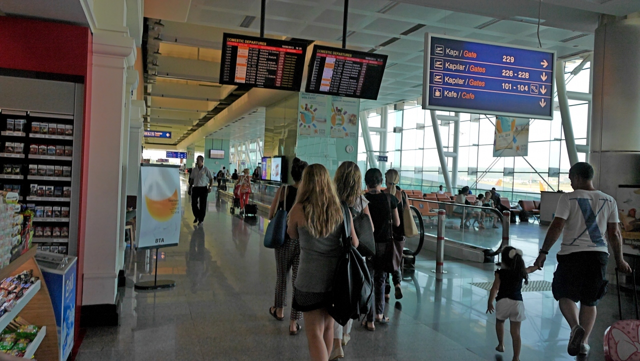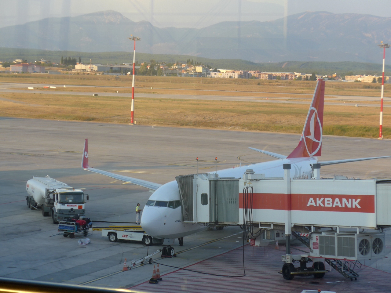 とてもきれいな西欧的空港.トルコでは空港に入る前にセキュリティチェック,搭乗前にもと2回ある.レンタカーから降りたら勝手にポーターが荷物を積み込む.カウンターまで運んでくれたが5TLのチップで悪態をつかれた.嫌な思いをするのでポーターを使わないかもっとチップを出すかどちらかだ.