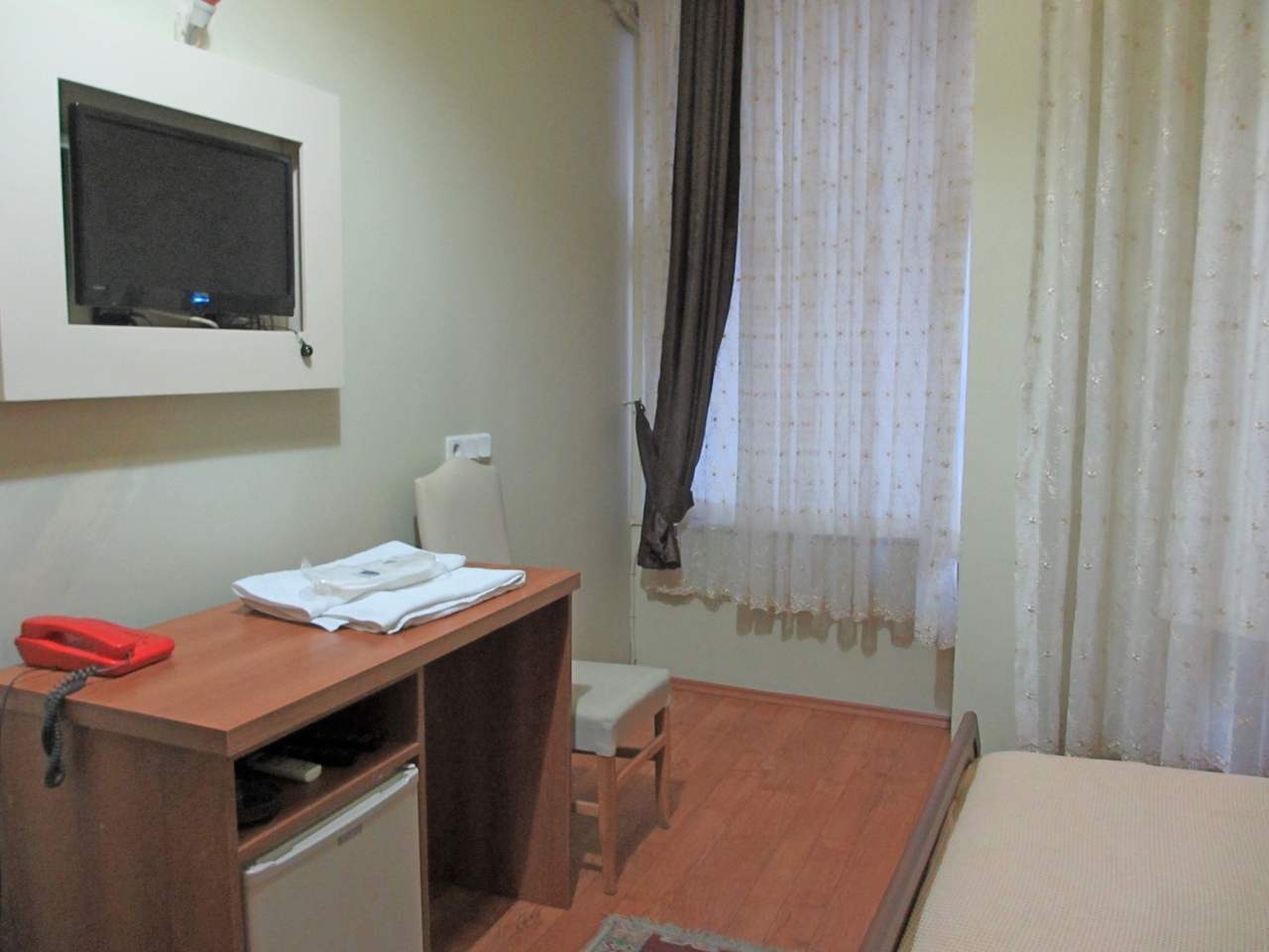トルコの三ツ星ホテル.友人がこのホテルの前のイタリアレストランで働いていたことがあり,以前から知っているホテルで紹介で泊まる.シングル90TL,36ユーロ,これは特別の割引価格.朝食付き.部屋は少し狭く,朝食も三ツ星下の水準.シャワールームはカーテンがない.値段相応か.この値段でイスタンブールに泊まれたのでまあいいか.場所はTunel駅のそばで,イスティクラール通りから10mほど入ったところで最高.レセプションの人がとても親切だった.安く宿泊するにはいいホテル