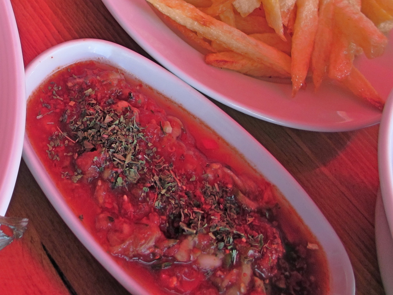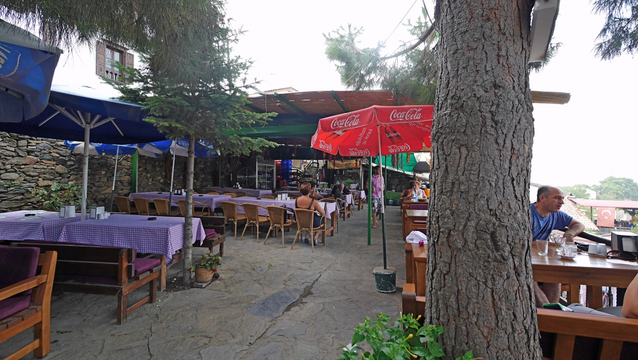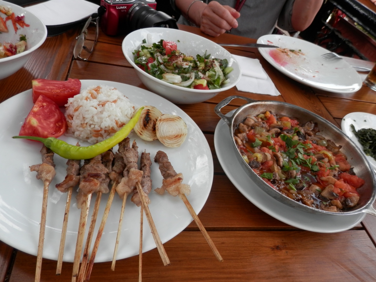 イスタンブールペンションの女主人に勧められた店.一番の高いところにあるので景色はいい.ワインもおいしかったが,肝心の料理はいま一つ.シシケバブやチョパンサタラスやマッシュルームの煮込みのマンタルソテなどを食べた.まあそれほどお勧めしないみせだ.むしろ広場の近くのLa Kavalaという店の方がおいしかった.