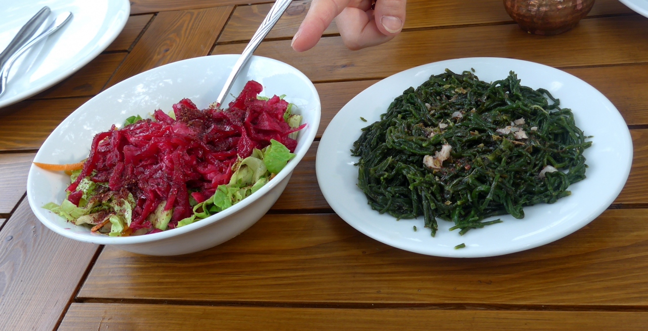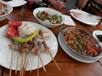 ギュウェルジン島からの帰りによる.島の中の要塞が閉まっていて,中のレストランについてはわからないが,島の外では多分一番近い本格的レストラン.島から海岸沿いに歩いて3分.わたしたちは魚を挙げたものを食べたが,素材そのままで地元の魚おいしかった.車の運転をしていたので残念ながらお酒は飲めなかった.羊飼いのサラダはまあまあ.米のピラフは普通.目の前が港だし,ここで食べてもいい店.魚は25TLと少し高いが,港なので魚がいい.