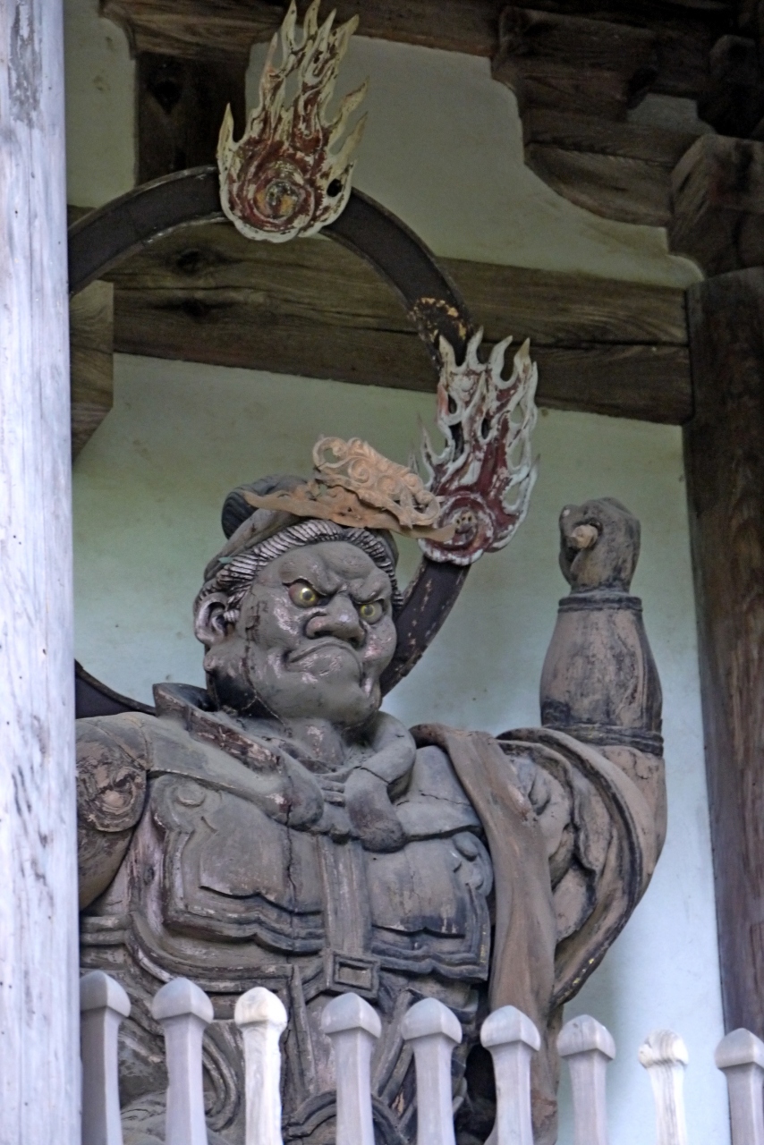 本堂でお寺の方に説明をしてもらった,清凉寺式釈迦如来立像,二天王,十二神将などが安置されている.十二神将のお顔だち,二天王の平安らしいやさしさも印象に残る.素晴らしい仏様がたくさん.本尊の薬師如来は秘仏.寺の人の話はユーモアがあった.十二神将は自分の縁がある十二支でないと願っても無駄ということは初めて知った