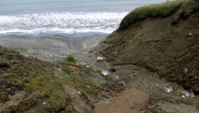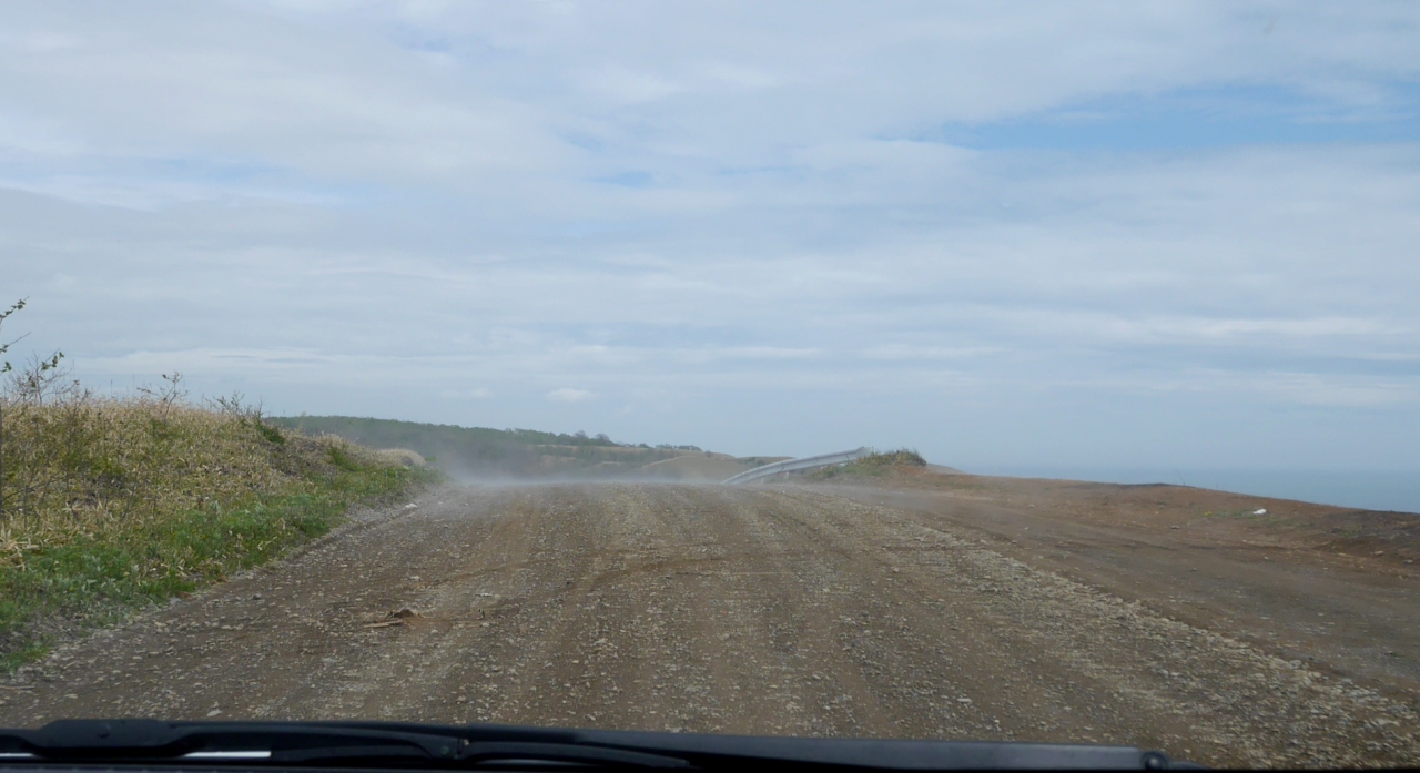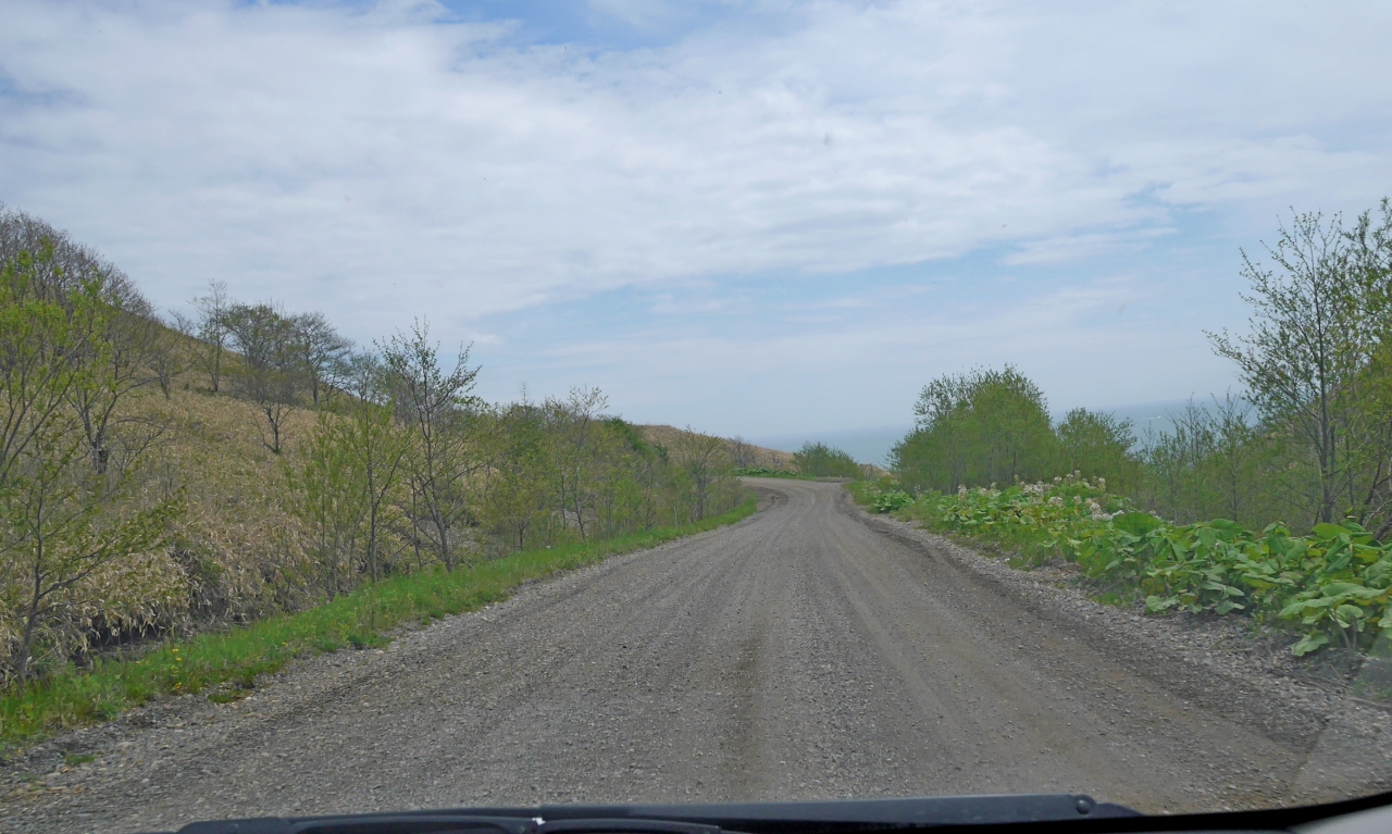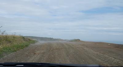 じゃり道を行くが海が素晴らしい景観が待っている.近くの黄金の滝上もみるといい