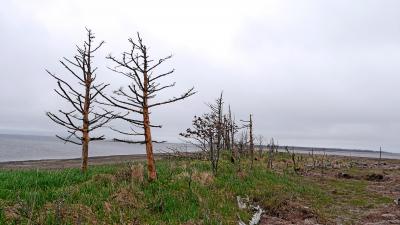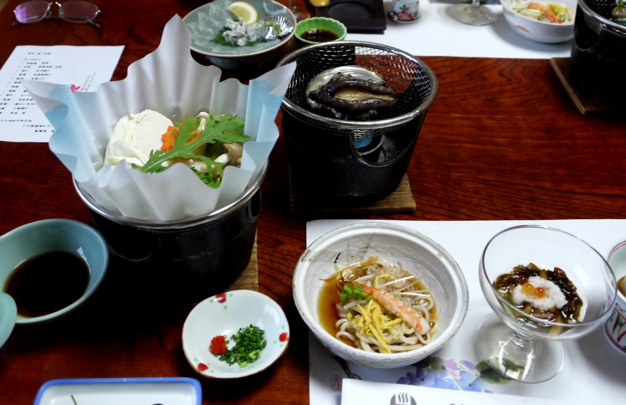 尾岱沼への宿泊は家人の希望.再訪だ.今回は家人がもう一度トドワラをみたいといったので再訪した.1982年に来たときは,予約をしていなくて,突然に泊めてくれと入った.怪訝な顔をされても泊めてくれたことを覚えている.急な泊まり,それも9月下旬だったために,山盛りのエビが出たのを覚えているが,その時宿泊した旅館.多分この旅館の前身の戸田旅館に泊まったんだと思う.1泊13650円,旅館は新しくきれい.ツインの洋室は広かった.夕食はえび,毛ガニ,貝が中心の献立.貝が嫌いだとちょっと食べるのが大変かも.私はそれほど好きでないが,嫌いでもない.家人は大好き.地場物をそろえたまあまあの夕食.朝食は質素だが許容範囲だった.部屋食ではないが,食事処では部屋ごとの個室で食べるのがうれしい.むしろ部屋でないほうが後で匂いなどが残らなくていい.お風呂は小さめだが,いい温泉.おすすめほどではないが泊まってもいい宿.