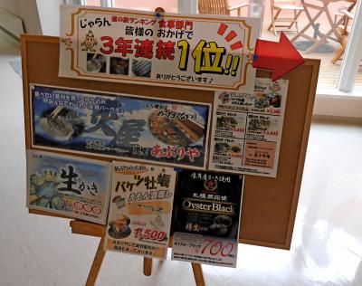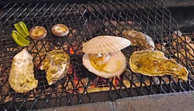 厚岸の道の駅コンキリエ(イタリア語で貝の形をしたたべもののことらしい)にて昼食.魚介売場で新鮮な牡蠣やホタテガイ,エビなどを買って,その奥の炙屋で炭焼きにして食べる.炭焼き料300円とご飯とみそ汁代のみ.焼き牡蠣のおいしかったこと!やすいしおいしいし絶対のおすすめ.残念なのは運転手は飲めないこと.今度は厚岸に泊まるか電車で来て食べよう!