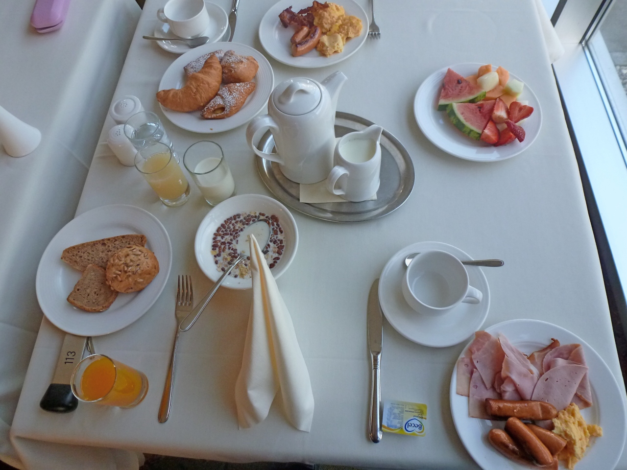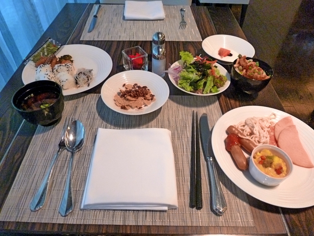 1泊13960円(ツイン)とやすい四つ星ホテル.部屋は機能的で広かった.朝食は三ツ星上といったところか,やたらと甘いパンが多かった.果物はあるが野菜はない.でも空港の近く0430からホットミールを除き朝食が食べられたのには感激した.