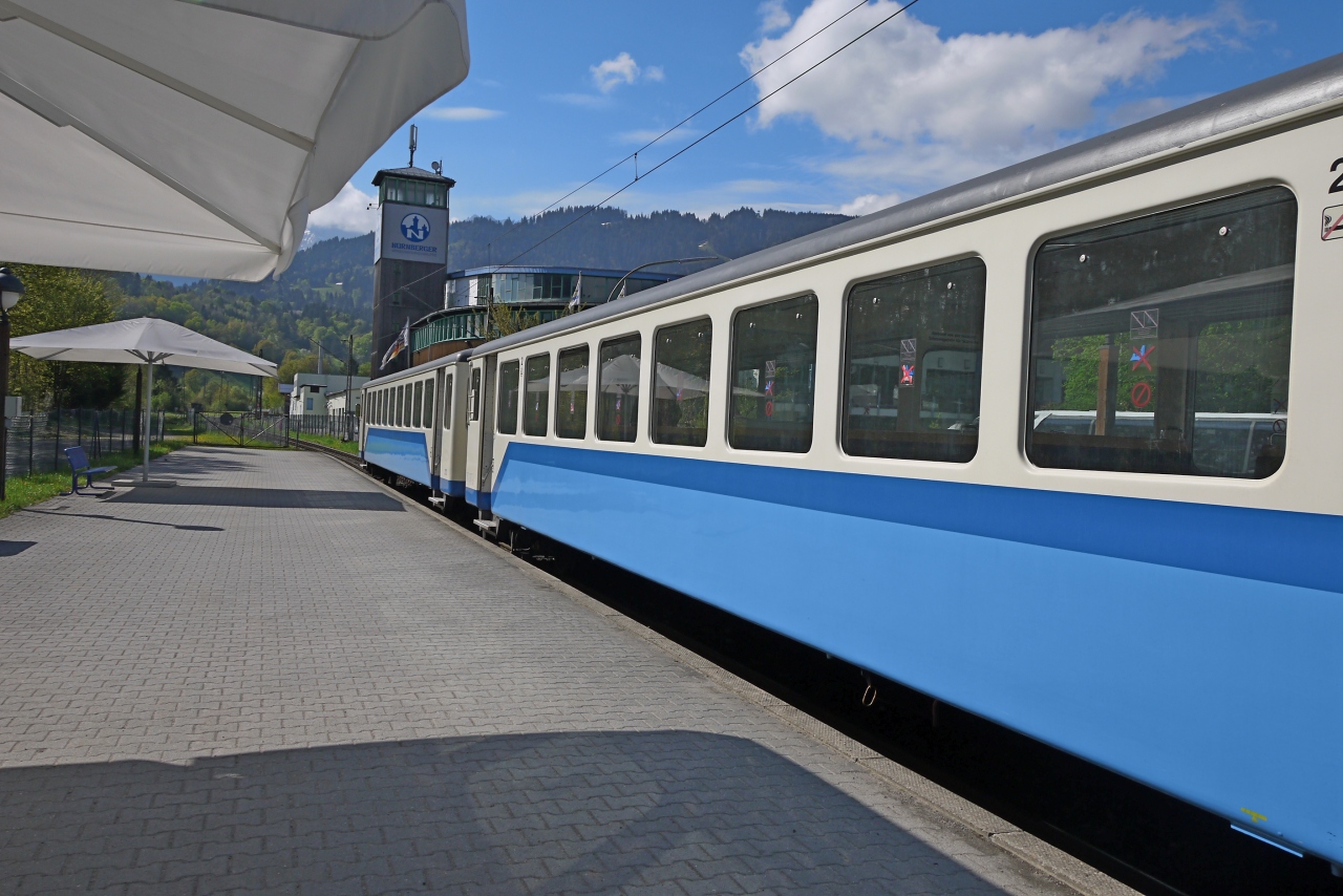 レンタカーで行って,Zugspitzeに登山電車で登るとき,あいていればBayern Zugspitze鉄道のGarmisch -Partenkirchen駅駐車場が一番便利.隣がホーム!一日2.5ユーロ.ここがいっぱいでも周りに駐車場がいくつかあるので,町による必要がなければこの駅の周辺が便利.(町は反対側,地下道を通ってDBの駅を越えた向こう側,駅前までも徒歩4分)特に隣の駐車場は,帰りの下車後30秒の位置に車が止められる
