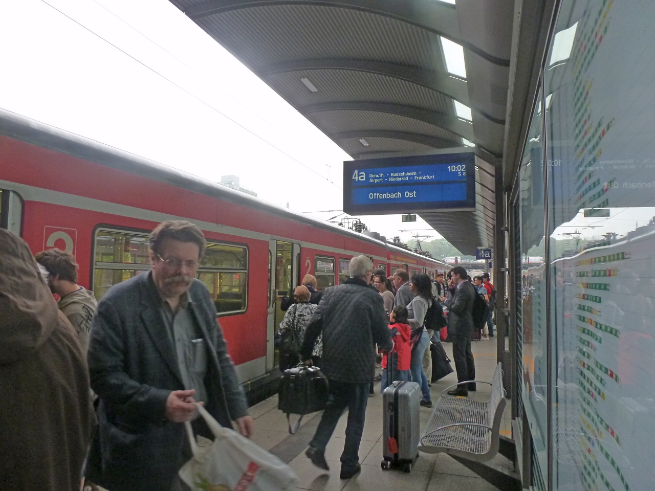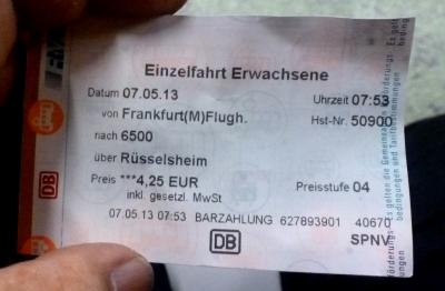 FRAフランクフルト空港で4時間以上(シェンゲン条約以外の国に行く場合は4.5時間以上)待ち合わせがあれば,Mainz市内散歩がおすすめ.S-bahnの乗り場まで行って,自動販売機(英語なのでわかりやすい)で往復かシングルチケットを買う.シングルで4.25ユーロ.S8のみでなく普通列車でも良い.所要30分.ほぼ20分おきにS8.その間に普通列車も入る.往復で最大1.5時間みて,空港に1.5時間前にもどるとすると,それでも1時間はMainz市内を見学できる.有名な大聖堂までは徒歩15分.道が少しわかりにくいが,所々に標識がある.ドイツの歴史的な中都市を気軽に見学できる