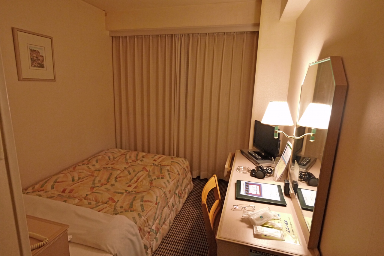 1泊朝食付き8800円で3泊.学会で宿泊したが典型的なビジネスホテル.市電まで徒歩4分と少しある.熊本城までは徒歩10分ほど.部屋は典型的なビジネスホテルで広くない.禁煙希望とは書かなかったためか,喫煙フロアにまわされてしまったが満杯で変えられなかった.アメニティもビジネスホテル.朝食はまあまあ.市内に泊まる時にはこのくらいで我慢しなければならないか.仕方がなければ泊まってもいいホテル