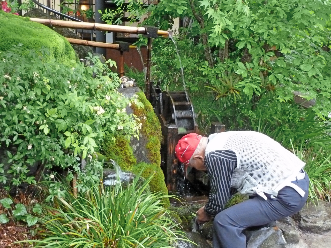 宮地湧水 阿蘇神社参道の一番端にある.抹茶 お菓子おいしかった