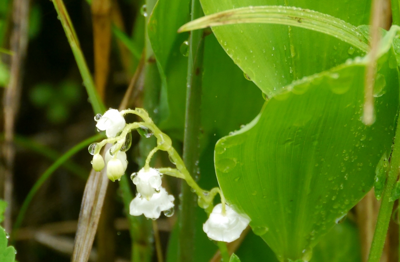 宮地の菓舗さとうでたまたま別のお客さんが言っていた「すずらんの里」という言葉が心に残る.ナビに「すずらん自生地」と載っていたので行ってみた.最初は雑草が多く失望したが,観光客の来ない南側の斜面にはすずらんがたくさん咲いていて,甘い香りもする.自生なので小ぶりのスズランだがあめのしずくにみずみずしい.今日は雨でよかった!少し外れたところまで丁寧に観察するとよい.日本の南限の自生地とのこと