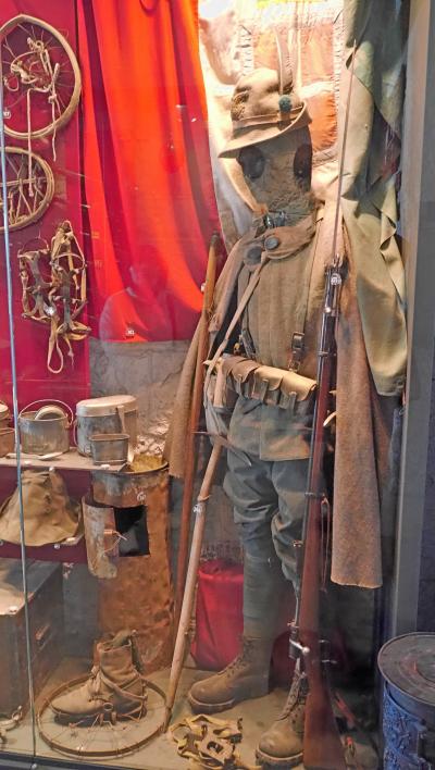 Cortina D'Ampezzoから,ER48号線ドロミテ街道最初の峠,2105mのFalzarego峠から,SR48号線と別れ,2168mのValpalora峠を越えたところにある.駐車場がありそこからのドロミテアルプスの眺めは最高だが,この博物館入場者のみしか停められない.そのため道に観光バスが停まるため,多分シーズンでは渋滞するだろう.私たちはゆっくりと景色も見たいので博物館に入った.第一次世界大戦はイタリアが連合国側,ドイツがオーストリアハンガリー帝国とともに同盟国側だったのでこのあたりが国境,最前線.展示物は戦争用具ばかりだが,当時の手術用具が現在とあまり変わらず興味深かった.山の上の要塞ということで入場料高くても入っていいと思う