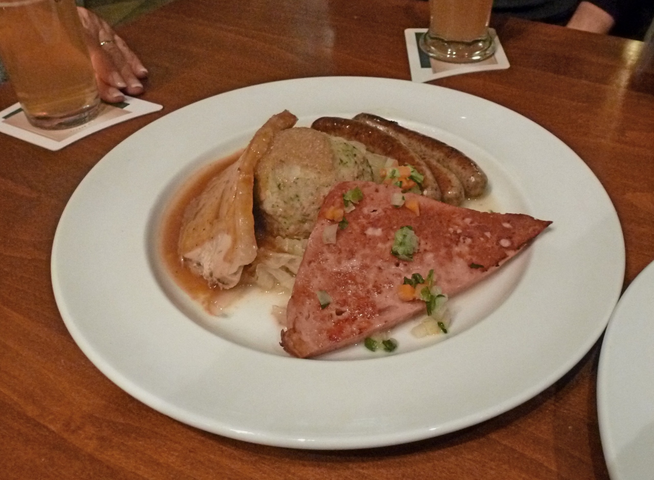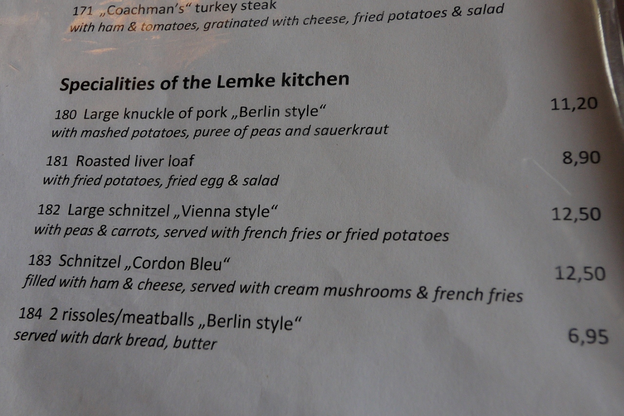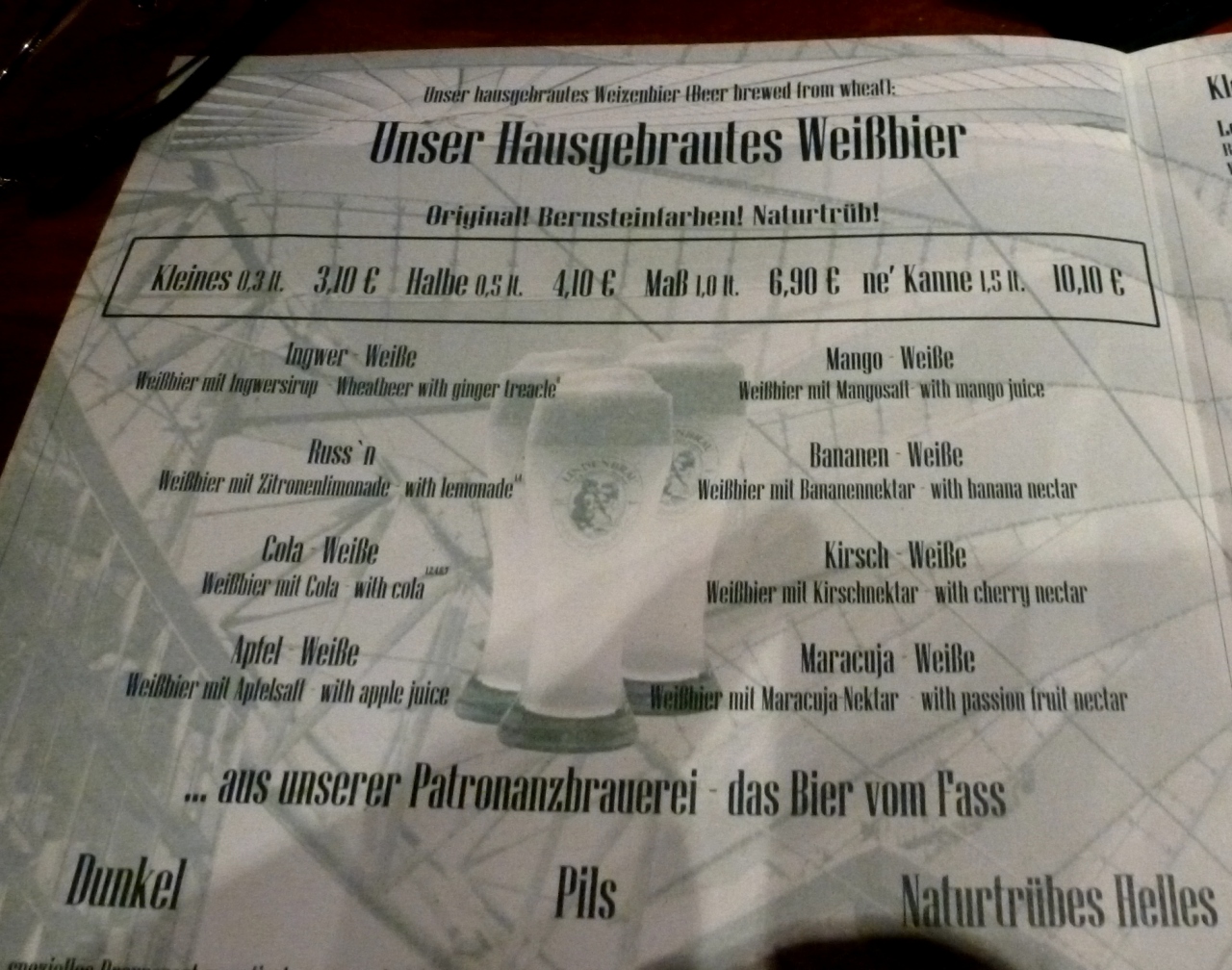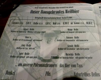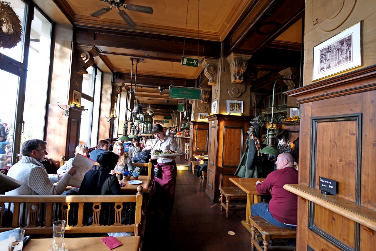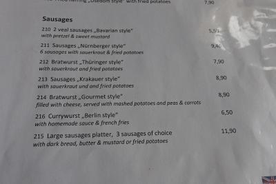 新宮殿の交差点の向かいにあるビアレストラン.ビールも料理も安くてとてもおいしかった.ホワイトソーセージとベルリン風ミートボールを食べた!普通に食べて飲んでも20-25ユーロですむのが魅力.ドイツ各地のソーセージがそろっているのも魅力
