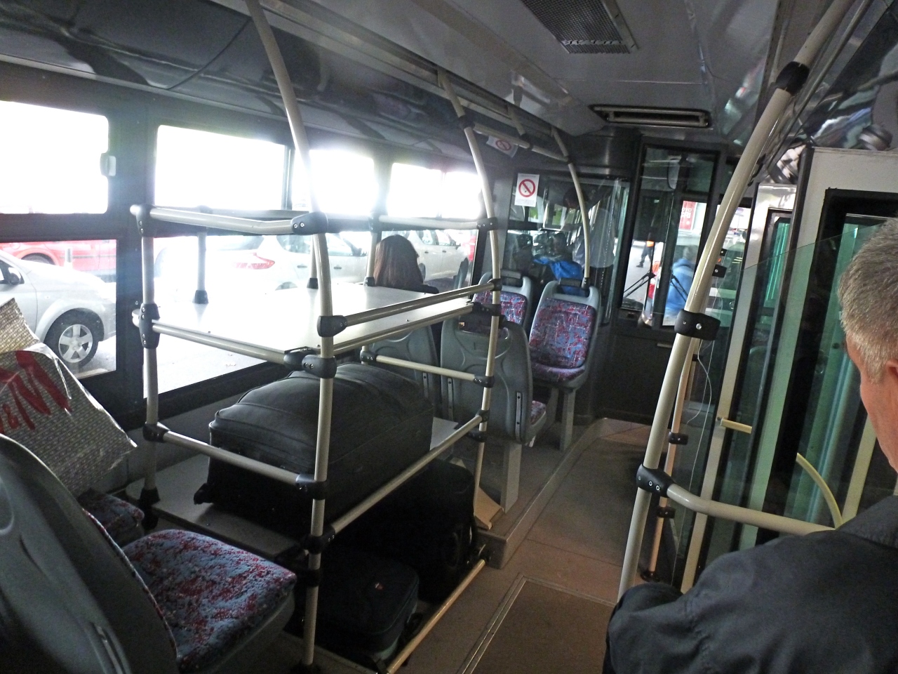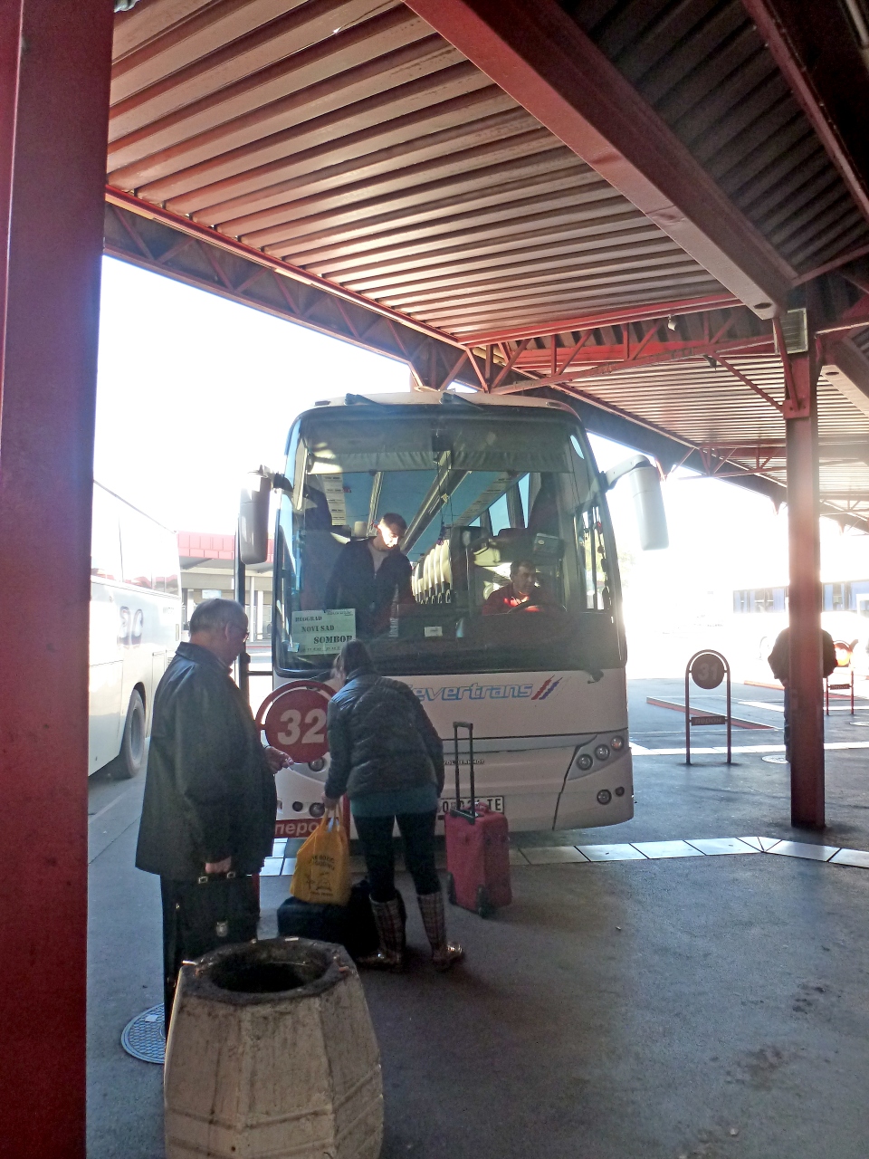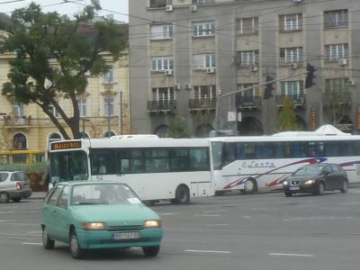 セルビア国内の中長距離バスはベオグラード駅に隣接したバスターミナルより出発.まず切符売り場で切符を買うと,改札口を入れるトークンをくれる.トークンを入れてターミナルの中へ.乗車券に書いてあるバスの乗り場番号で待つ.切符の半券を運転手が切る.バスのほうが便利だが,列車より料金が高い.私はNovi Sadまで使用したが,片道750DIN(といっても700円程度だが)往復1150DIN.ちなみにNovi Sadから帰りは鉄道にしたが,1等で632DINだった.しかし列車の本数が少ないのであまり使い物にならないのでバスのほうがいいと思う.また列車は犯罪が多いのか,列車内で武装警官にパスポートをみせ職務質問され「本来は宿泊証明書を持っていなければならない」と嫌味を言われたのでバスのほうがいいと思う.