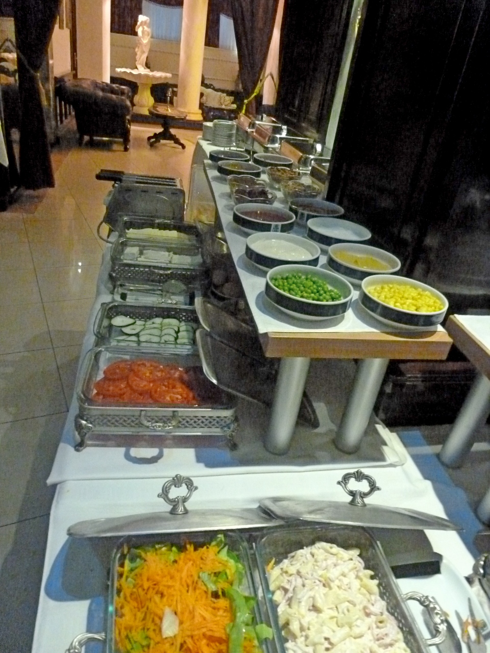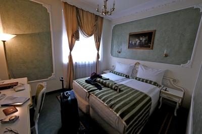 このホテル 1泊7000円 四つ星でデザインホテルと名がついているように非常に凝ったつくり.なんだかアベックホテルのようだったが,食事も良く,部屋も良かった.日本のラブホテルのデザインをまねしたらしいのだが,なかなかいい.何より駅から近く,バスターミナル,空港バス乗り場,ベオグラード駅までわずか3分も魅力.それらを使ってタクシーに乗る必要もないので経済的!