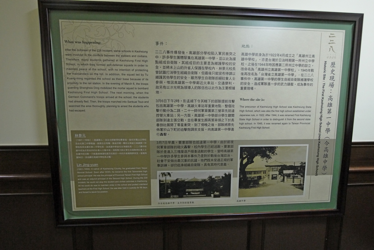 岩絵で有名な高雄の奥地,萬山の展示と二二八事件の高雄での推移を中心とした展示.萬山の岩絵は素朴で暖かい感じ.しかし同時にアルタの岩絵のモチーフが展示してあるので,これがそうかと誤解されやすい.二二八事件の高雄での勃発とそれに対する,高雄中学や駅,そしてこの博物館の前進だった高雄政庁での徹底した虐殺などの展示があった.とくに高雄市政庁への攻撃はジオラマで生々しかった.しかし実際の当時の遺品の展示は少なく,そこは少し物足りなかった.しかし二二八事件はきちんと日本人も知るべきだろう.私は現在の台湾の民主主義の伝統はこのときから始まっていると思う