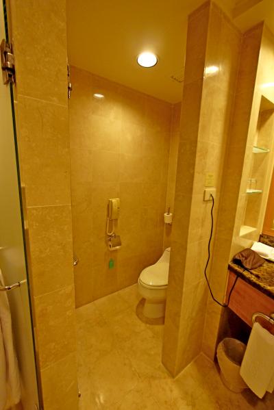 39階にロビーレセプションがありエレベーターを乗り換えるという最近多いタイプ.名古屋のマリオットアソシアや仙台のウェスティンなどと同じだ.このホテル,アップルワールドで朝食付き12510円だったが,居住性抜群!今までのホテルで一番居心地の良かった部類だ.特に海外では一番かも.(といってもヨーロッパではヒルトンかインターコンチが一番上級なホテルでしかとまっていないので,私にとってはだが)台北の晶華酒店よりも室内は気に入った.朝食はやや油っぽく,私には台北の晶華酒店のほうが豪華で種類も多く口に合った.