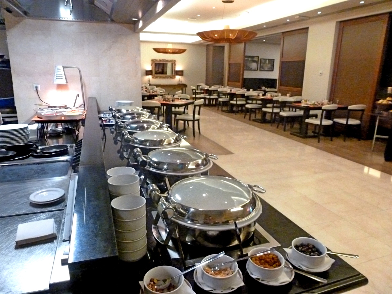 朝食無料だそうだが,朝は大混雑.食べるものの種類はかやくごはんなど結構あったが,混雑に閉口.またトレイも小さく,一杯とれないようなケチさ加減.とてもゆったり食べるスペースでもない.これでは朝食無料でも絶対嫌だ.ただほど高いものの典型.部屋は広く機能的だったのだが..まあ二度ととまりたくない