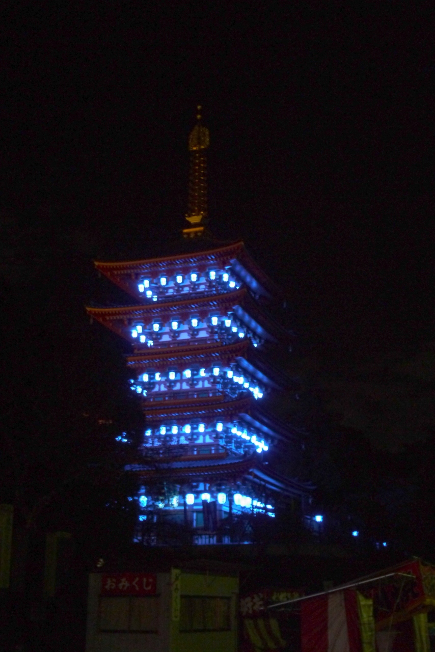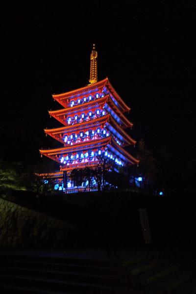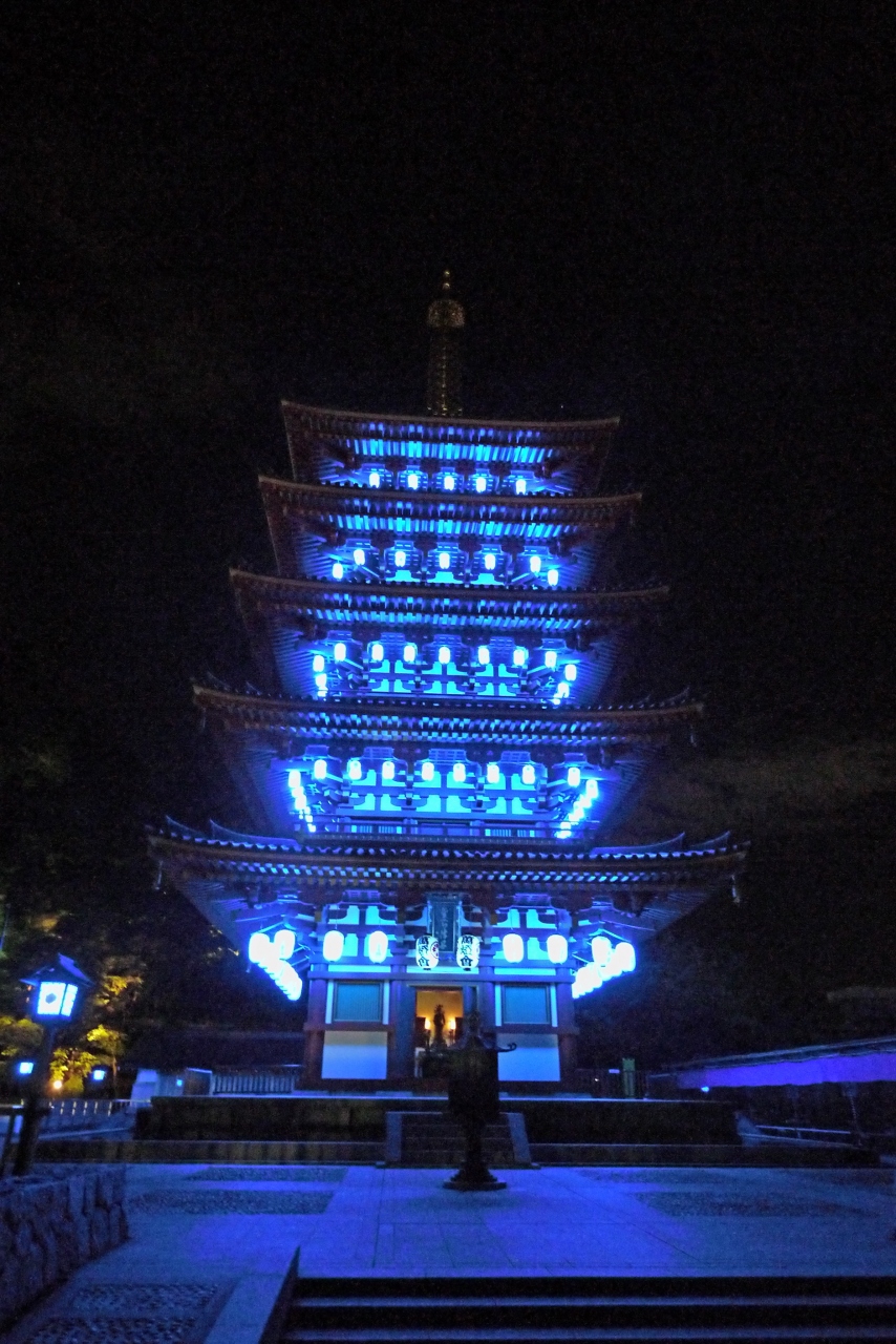 これから毎年11月14日の世界糖尿病デーには青い万燈会の提灯により五重塔が青く光ります
