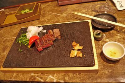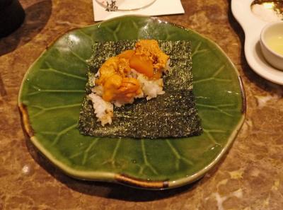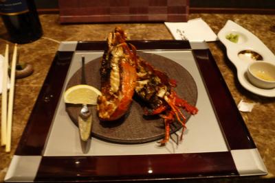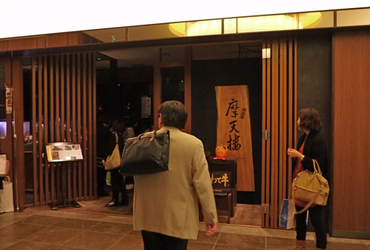 ソラマチ31階の「摩天楼」というお店.鮑だの伊勢エビ,ステーキなど日本人が好きなフルコース.カウンターで見ているのはとても楽しかった.ステーキは一応水準だったが,鮑と伊勢海老は私はいま一つ.やきうにはおいしかったが,一番おいしかったのはデザートの氷ツリー.瀬戸内海大三島の伊勢エビや,ノルウエーのエビなどを食べてしまったわたしには少し物足りなかった.9800円と格安.目の前で焼いてくれるのも楽しい.ぜんたいとしてはおすすめのみせ.