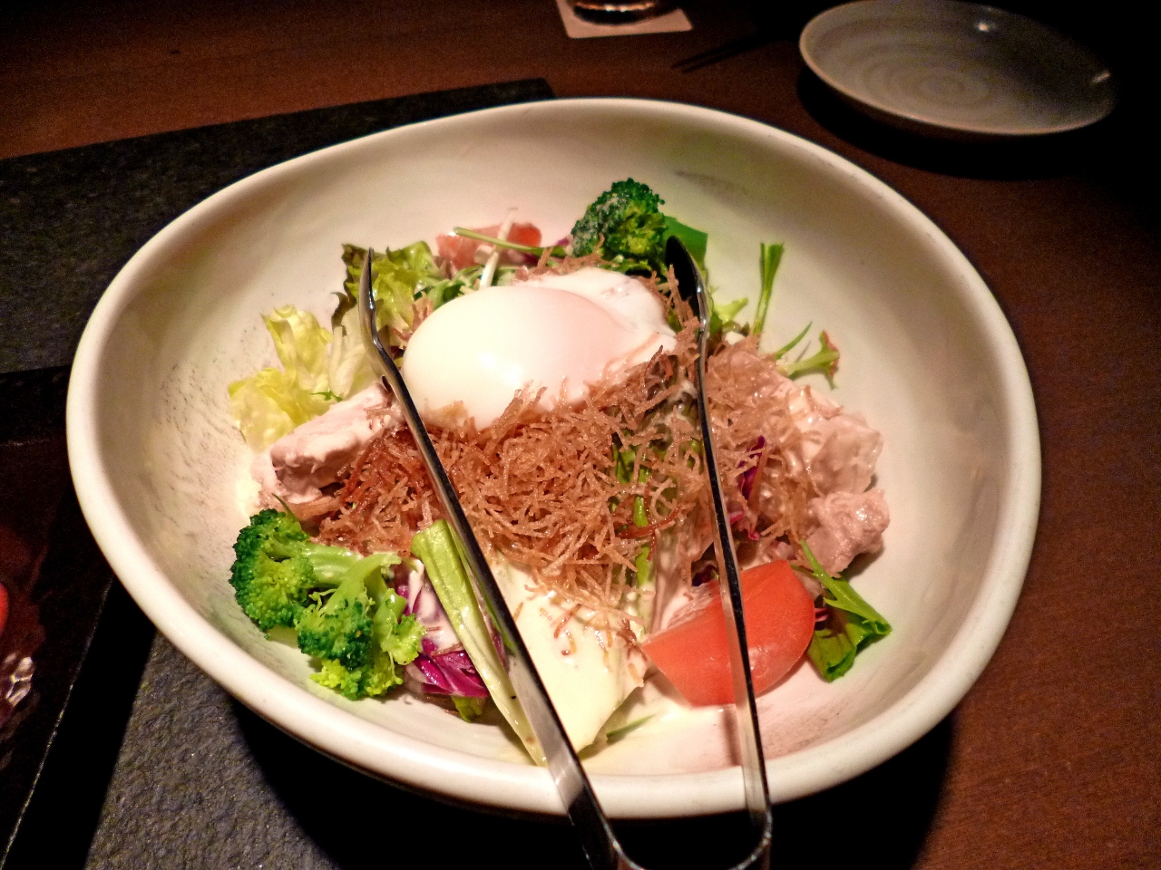 ビールなどを飲んで4人(一人飲まない)で14794円.時間と内容からいうと全体に小ぶりで少し高いと思った.まあ内容的にはひとり3000円,計12000円程度が相場の料理だ.店の看板と室内を少し疲れていたせいもあり,また談笑していたこともありとり忘れた.駅から近いので非常に込んでいたが,中も狭く,どうしても駅のそばで飲まなければという人以外はおすすめしない.