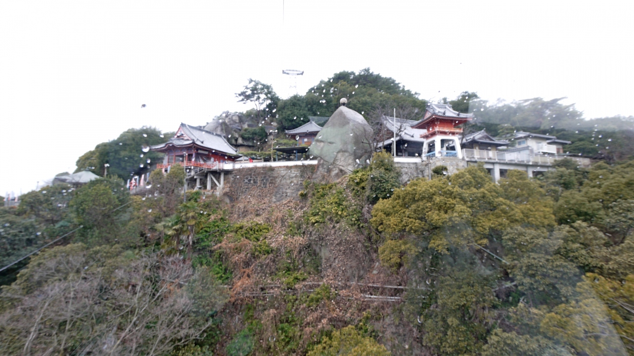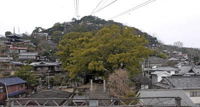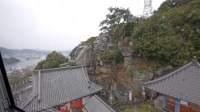 千光寺ロープウエイは片道280円,往復440円だが,山上まで片道使って,帰りは文学のこみち,千光寺,天寧寺などを見学しながら歩いて降りるのがよい.ロープウエィからの千光寺の岩,天寧寺三重塔,尾道水道など景色も良いのでおすすめ.