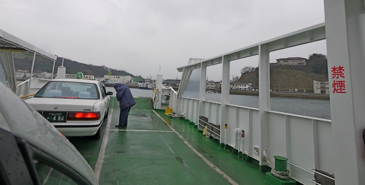 尾道から向島にわたるなら,尾道渡船土堂兼吉フェリーに乗るとよい.わずか300m,2分だが,渡船の気分と,尾道水道からの千光寺などの景色を楽しめる.普通車120円で運転手つき,乗客一人100円.とても楽しいし,安いしおすすめ.対岸には映画「あした」ロケセットのバス待合所もある.
