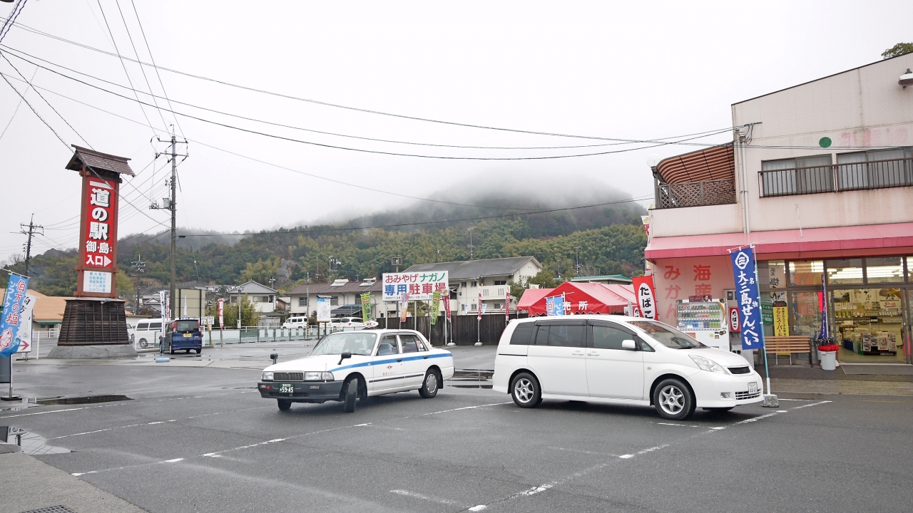 前にお土産屋があり,少しわかりにくい.前のおみやげ屋「ながの」のほうが,食べるお土産などの品ぞろえはいい.しかし地元の農産物などは安い.両方の違いをショッピングで楽しめるのもいい.大山祇神社の参拝の後によるのは最適.