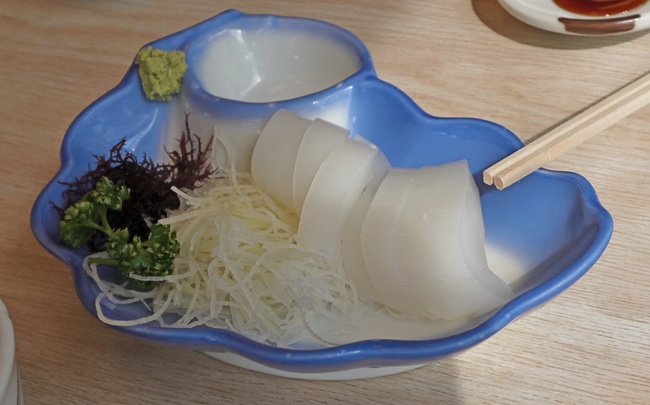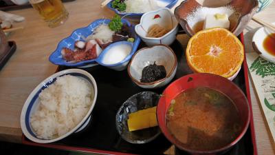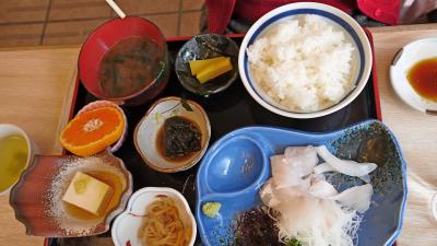 予約していなかったのでふぐなどは食べられなかったがイカ刺し700円.大アサリやき400円,たこぶつ定食950円,刺身定食1100円で結構ボリュームもありおいしかった.タコの丸ゆでなどもあった.西港の真正面であり,私たちのようにフラットよるにはいいレストラン.