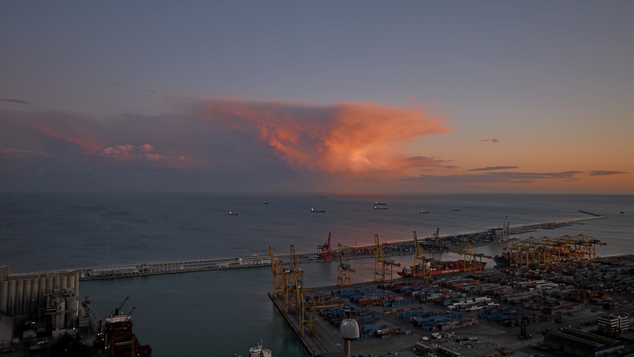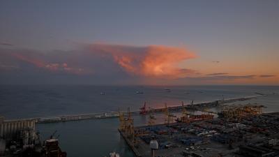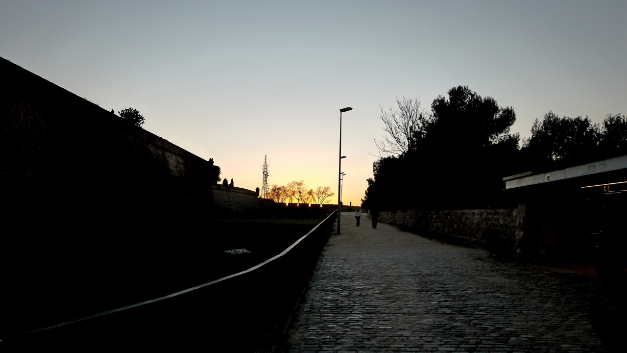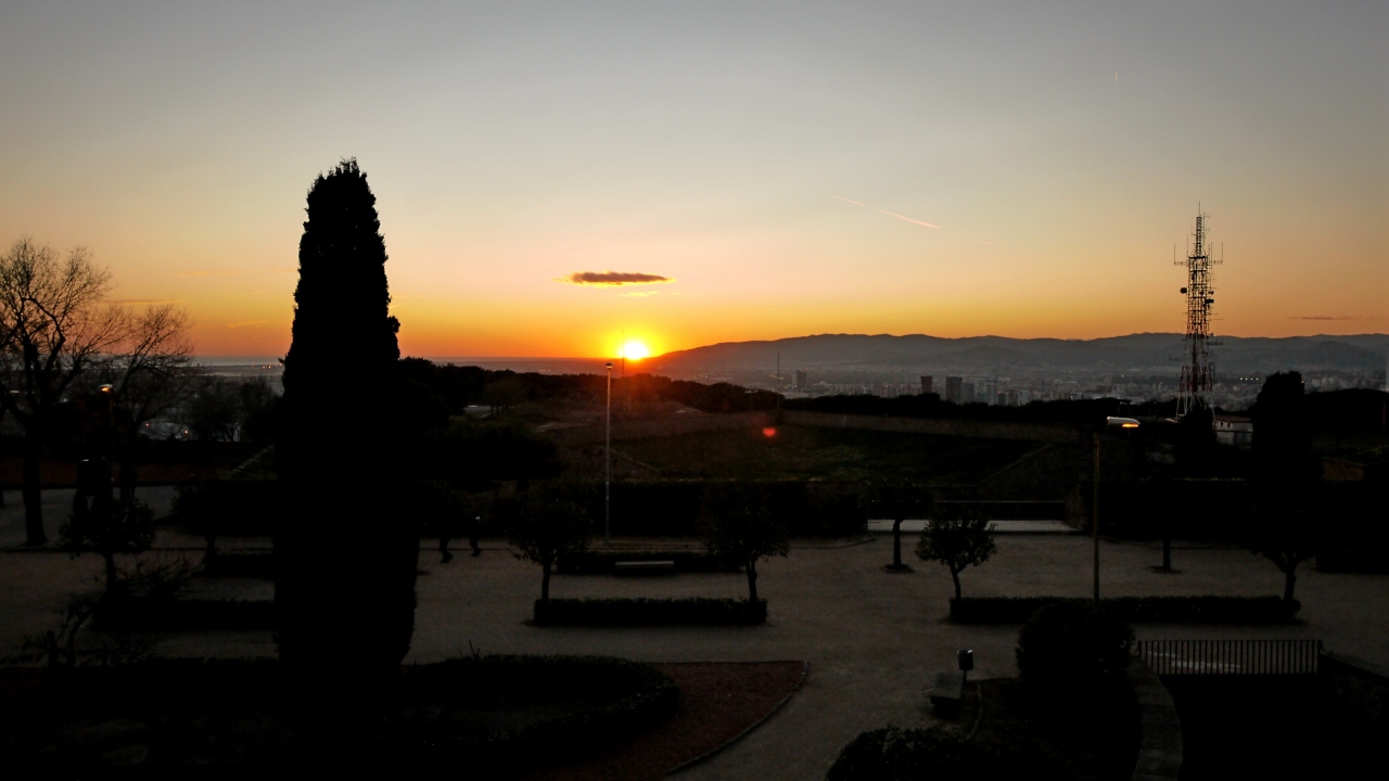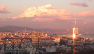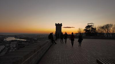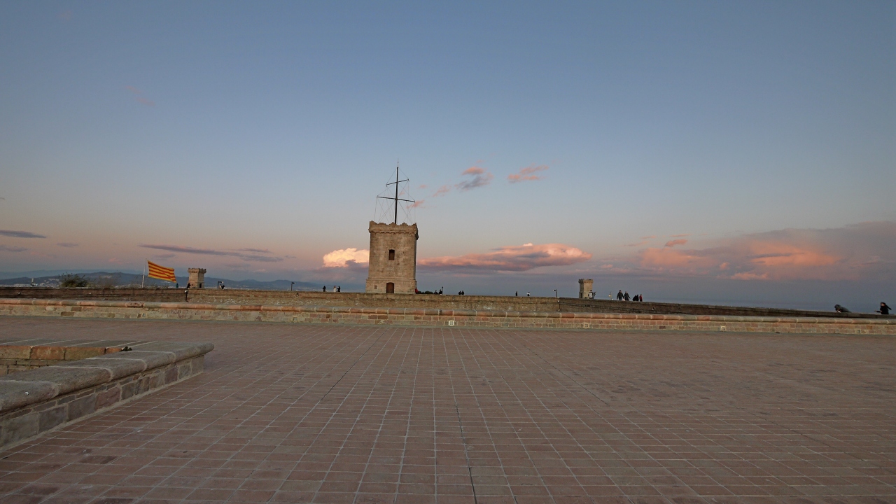 夕方のモンジュイック城,地下鉄3号線Pallalel駅Funicularに乗り換えてParc Montjuic駅へ.そこからTelefericゴンドラで,Castell駅へと登る.Funicularは一日乗車券で可.Telefericは往復9.6ユーロと結構高いが,ここの夕日を考えるともったいなくはない.バルセロナカードで割引になる.1月2日の夕日だったが,それでも最高だった