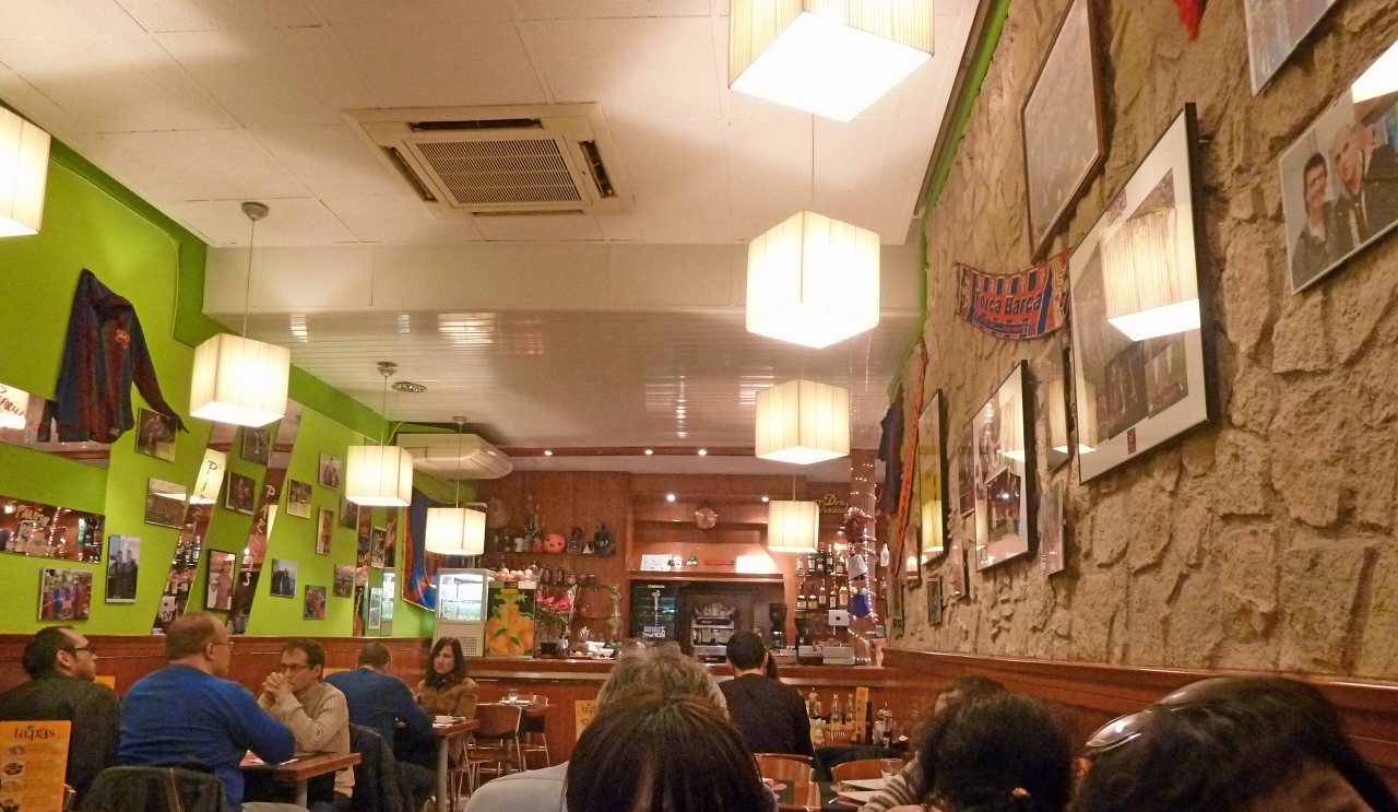 バルセロナでは一番質の高いフラメンコを見せるという評判の店.確かに踊りの水準は悪くない.洞窟のようななかで前のほうは迫力で楽しめるが,私たちは当日日本語案内センターで申し込んだため一番後ろ.日本語案内センターで「後ろの席ですこしみにくくてもいいですか」と聞かれた真の意味が解った.明日だと前の席が取れるので明日のほうがいいですよという意味も.そのためあまり迫力も伝わってこない.でもそれは我慢できた.問題なのはショーの短さ.あっという間に終わる.正味1時間.最後の10分くらいが写真撮影が可能.夏にSevillaのEl Arenalでは1時間30分あり,長かったし,踊りもたくさんありすごかった.フラメンコについては詳しくないが正直観光ナイズされていて失望した.単に後ろの席だったからではないと思う.そのくらい,Sevillaのタブラオ El Arenalについては迫力もあり,非常に印象深かった.