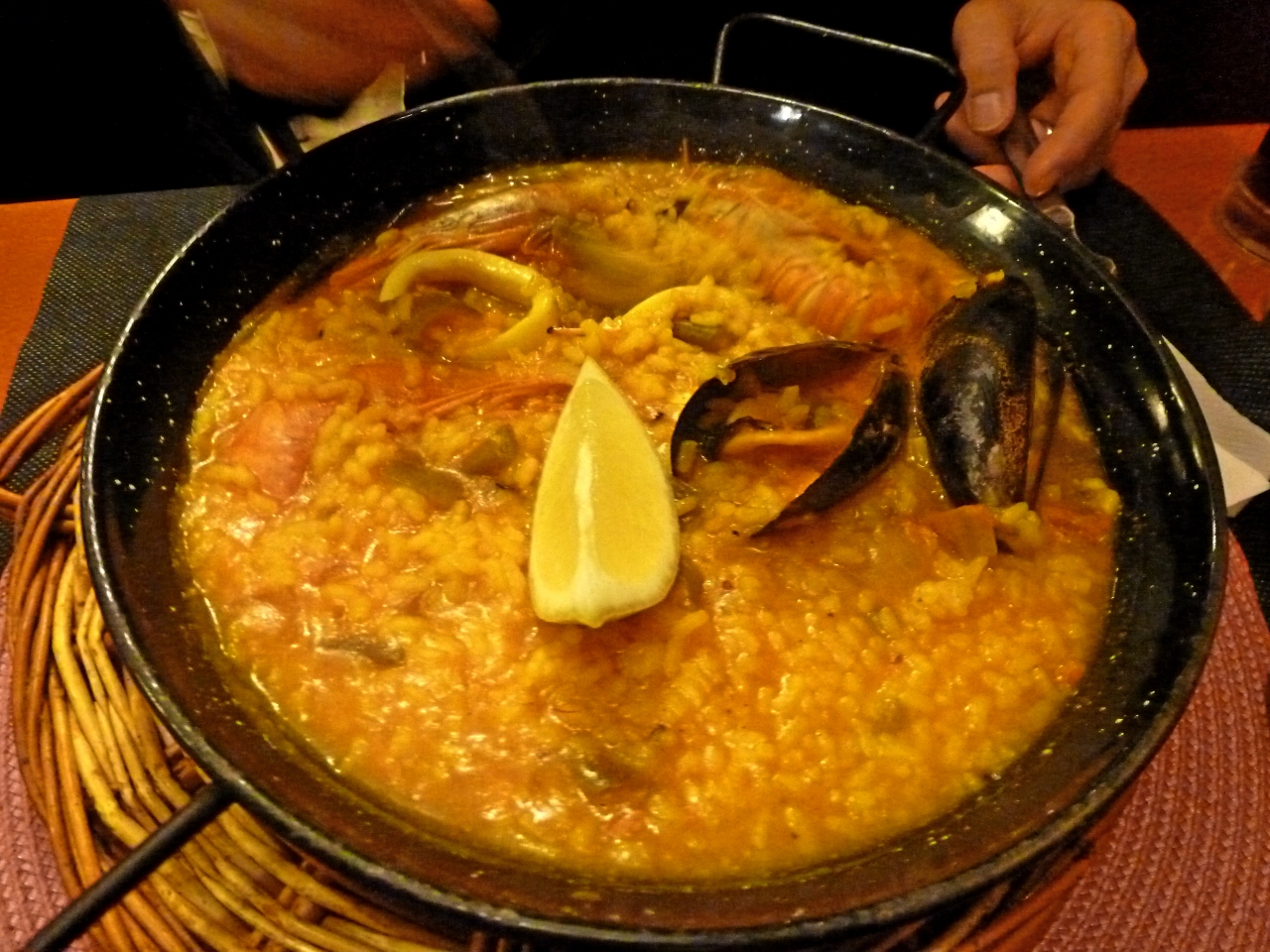 LiceuのレストランDon Fernandoで夕食.現地の人が多い庶民的な店.日本度案内センターで紹介された店だ.パエリア(普通のパエリアでおいしかった)ラザニアなど食べる.おいしかった.私は昼間のCuines Santa Caterinaで食べたパエリアの味が強烈だったのだが,この普通のトマト味のパエリアもまたおいしい.デザートのCrema Catalanaもカスタードとカラメルがぱりぱりとおいしかった.スペイン語話す地元の人で込んでいた.