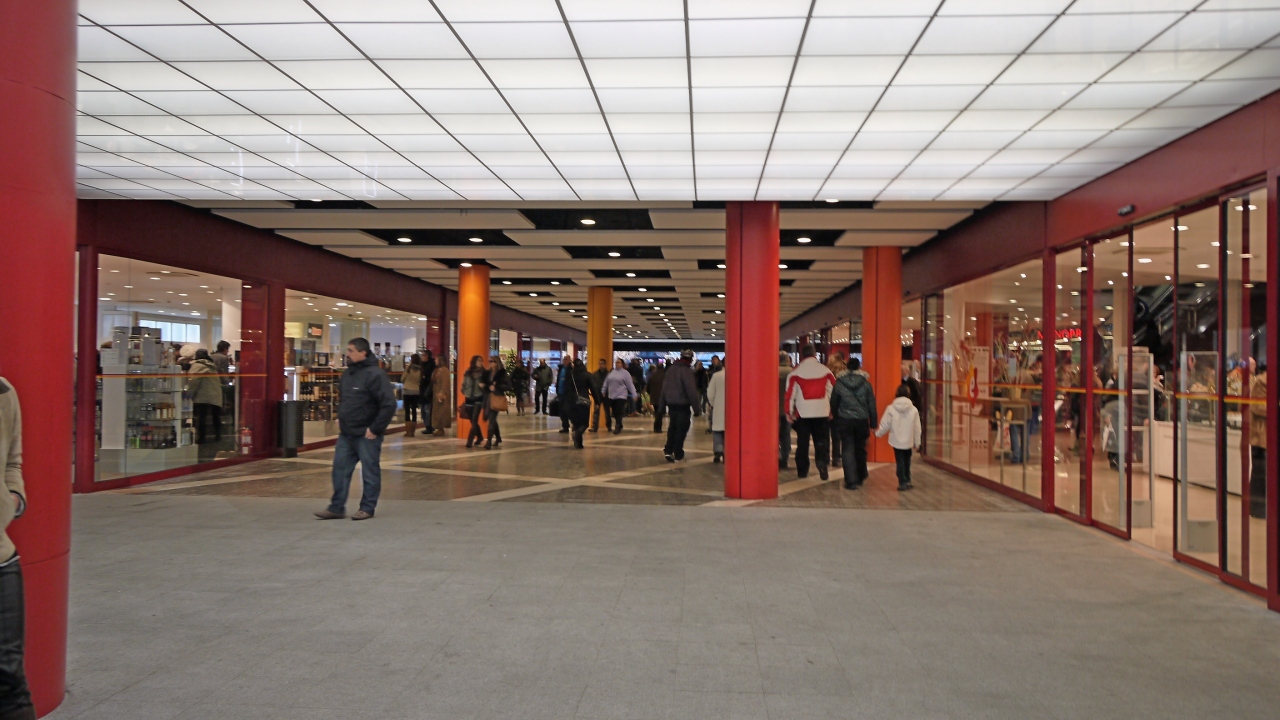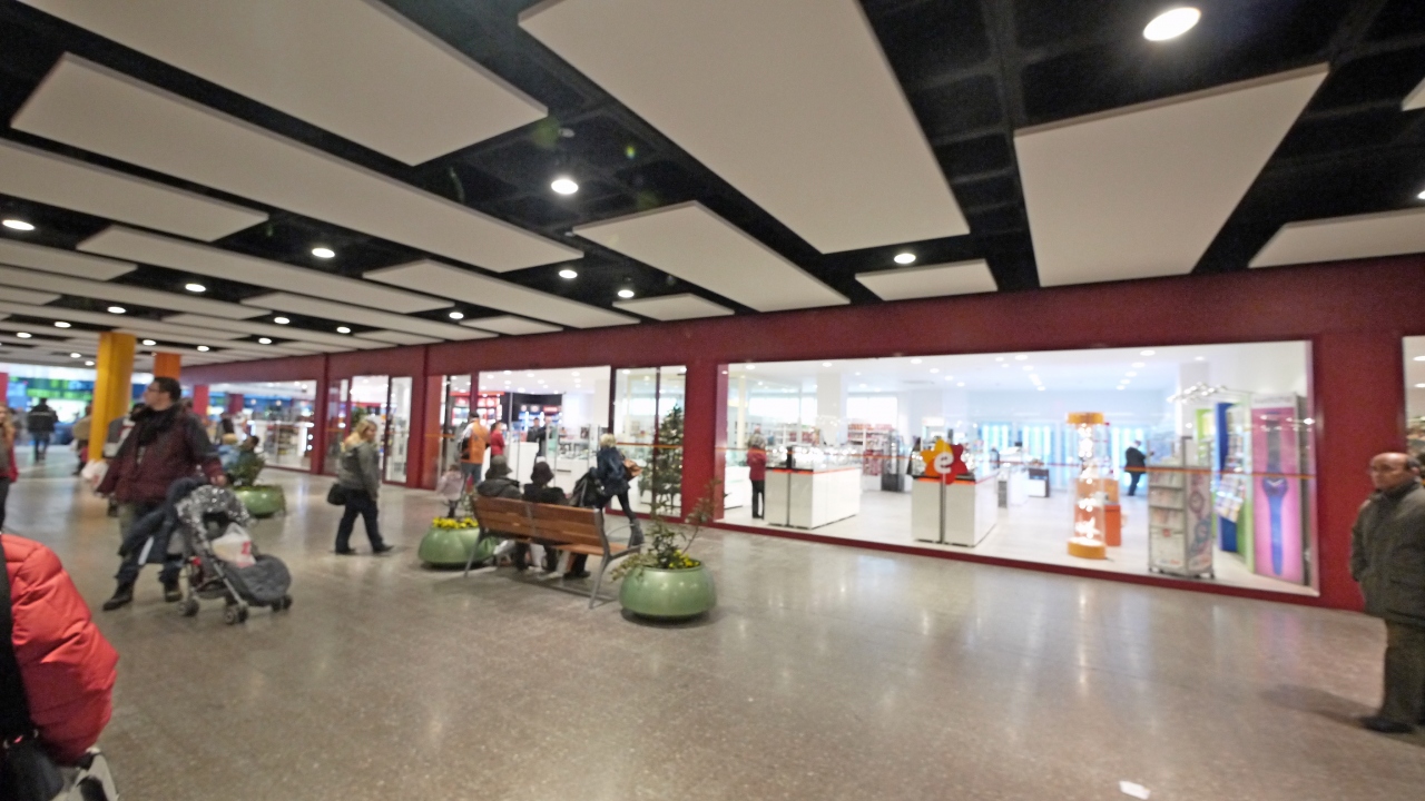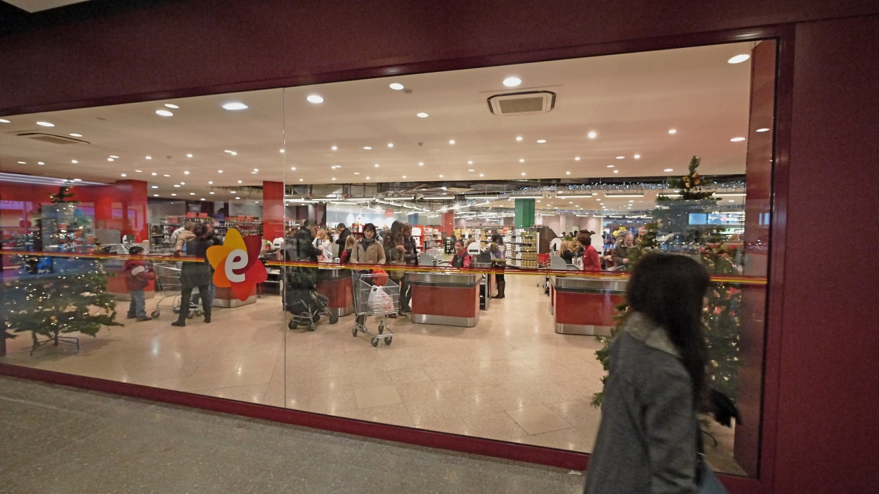 ロトンダ広場から西に150mほど行ったところのショッピングセンター.巨大スーパー,雑貨売り場,パン屋,ケーキ屋,おもちゃ屋など,2階には食器などの売り場.私たちは旅行二日目なので,遅い夕食開始時刻まで待てず,ここで買った食品をホテルで食べた.ウィンドショッピングでも楽しい