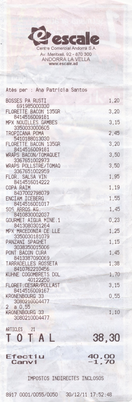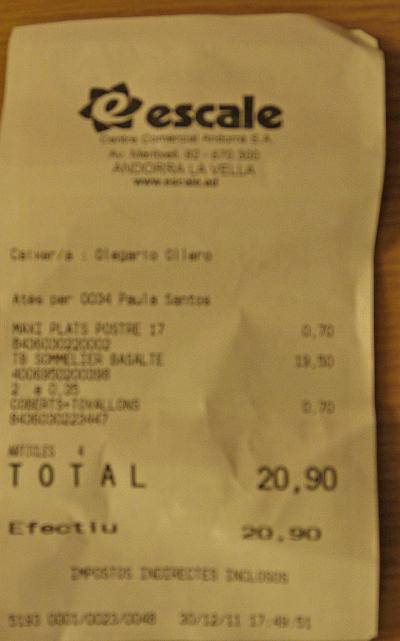Rambles通りから,一歩Ferran通りに入ったところ.3人で60.3ユーロ- 旅行時期