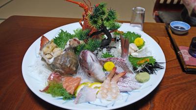 一泊二食で16950円,夫婦二人で宿泊.以前職場の仲間と来たが,非常に良かったので再び訪れた.食事は最高の一言!刺身からあわびの踊りやき,おこぜのからあげなどすばらしい.しめはタイの釜めし.家人も大満足!今回は大雨だったのでもう一度リベンジするぞ