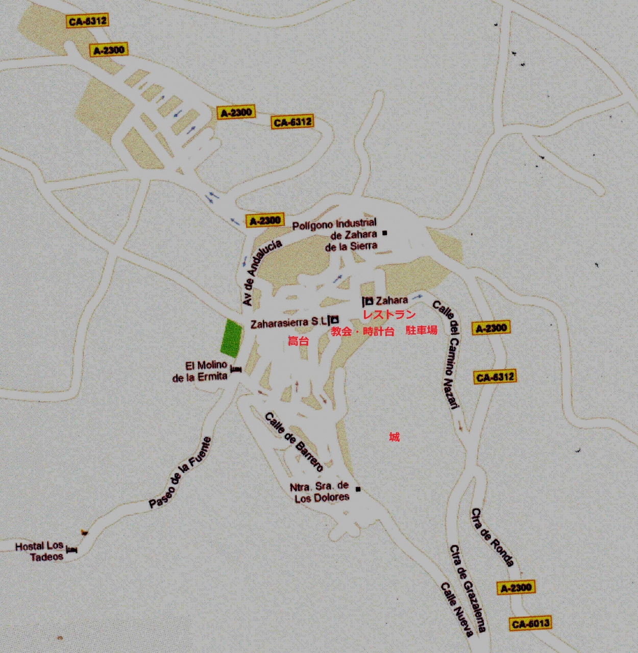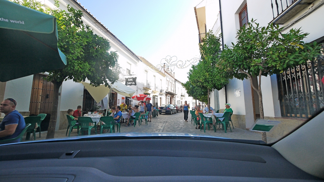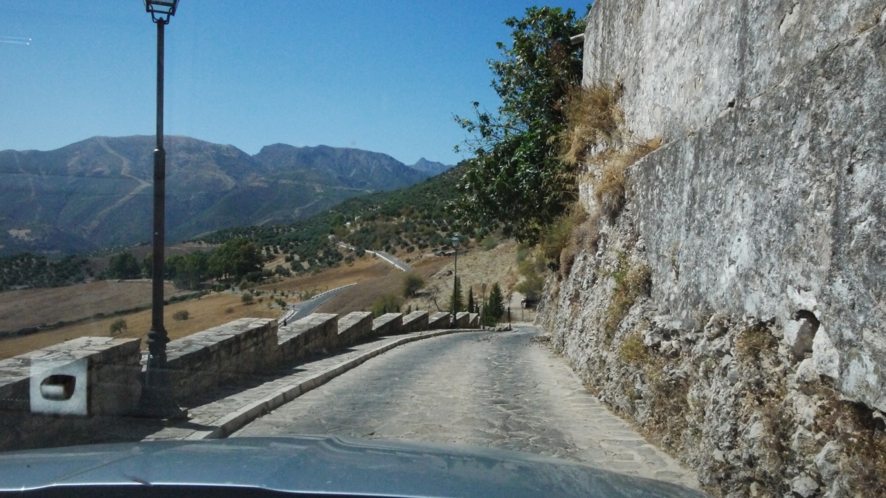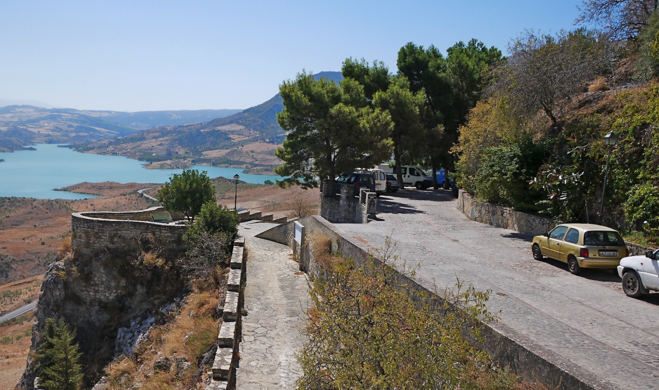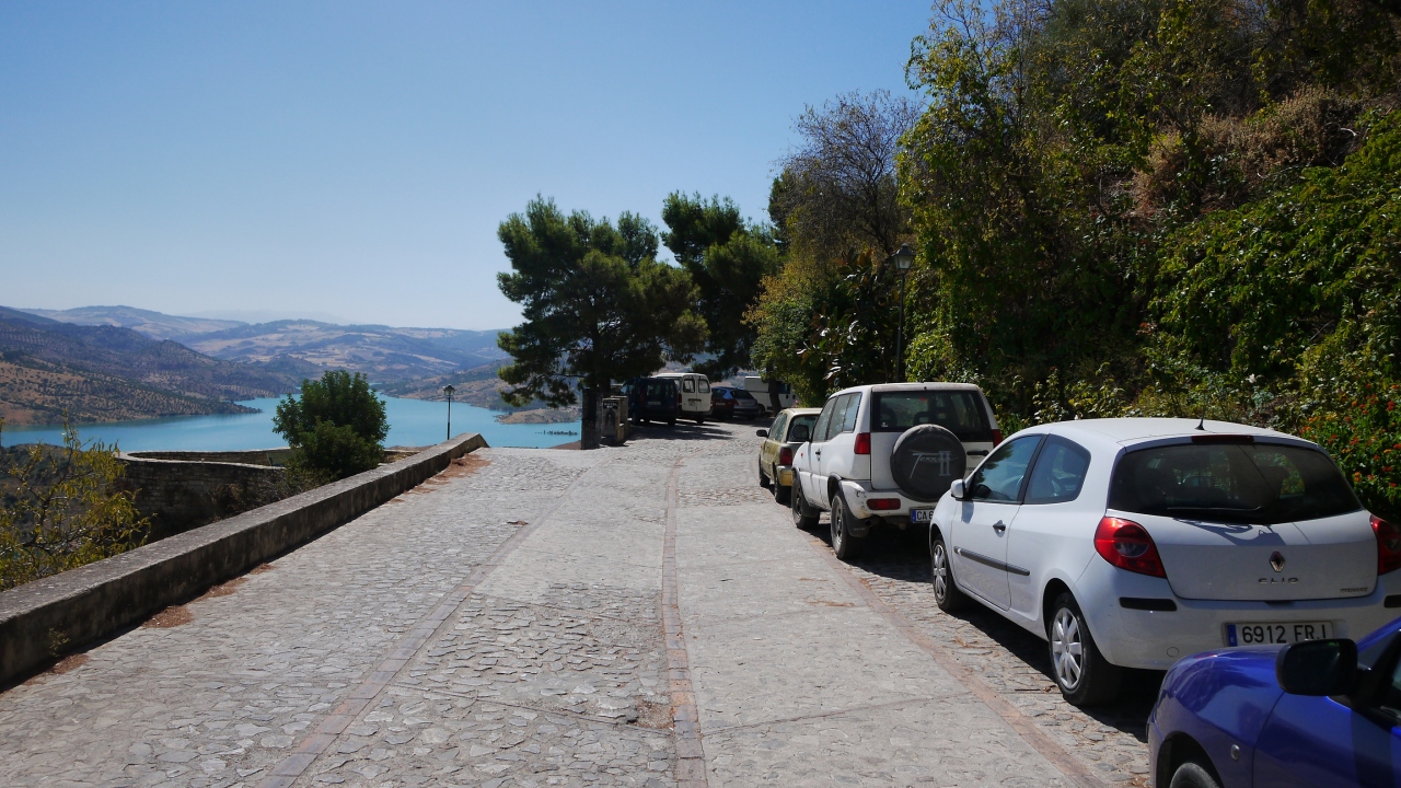 Zahara de la Sierraに入ったとき,全く駐車場がなくて,レストランのある広場を越え,教会の広場を越え,峠を越えた向こう側まで行くと,駐車スペースがあった.ここには自由にとめられるので,車で町をつっきる必要がある
