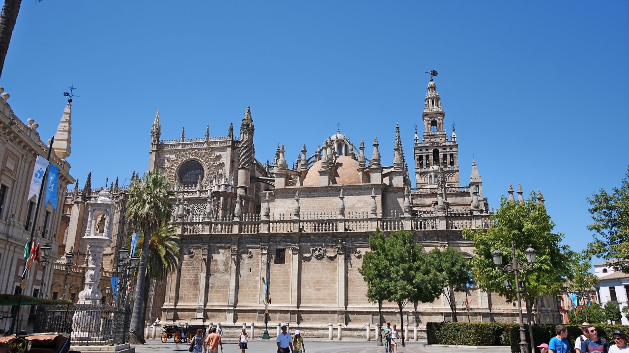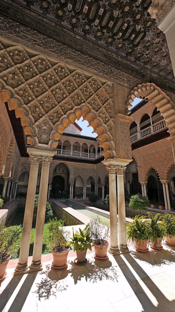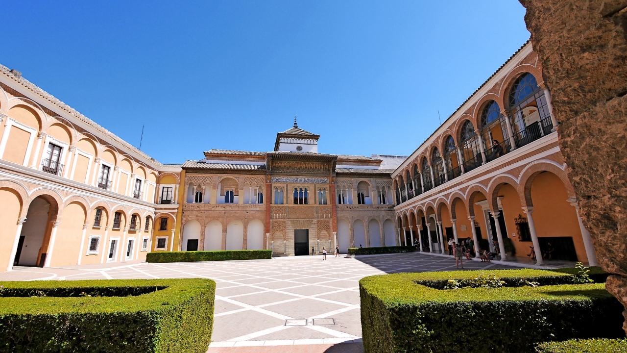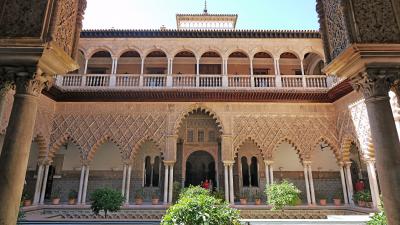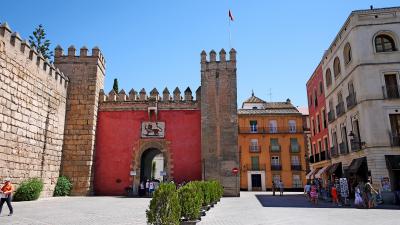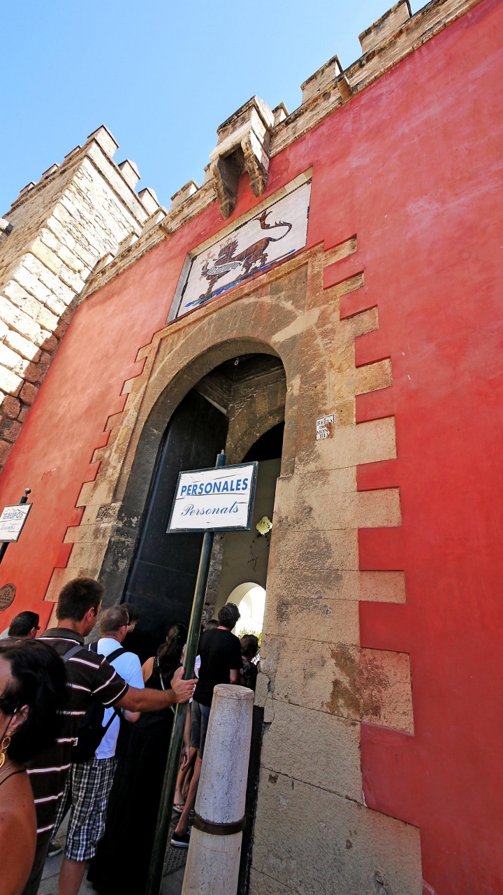 アルカサルの入り口が「地球の歩きかた」の地図だと,プエルタ・デ・ヘレス広場側に思うが,カテドラルの正面真ん前だった.私たちはそこがインディアス古文書館とおもって,探してしまった.赤い入口が目印,入場料は上がって8.5ユーロだった.