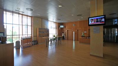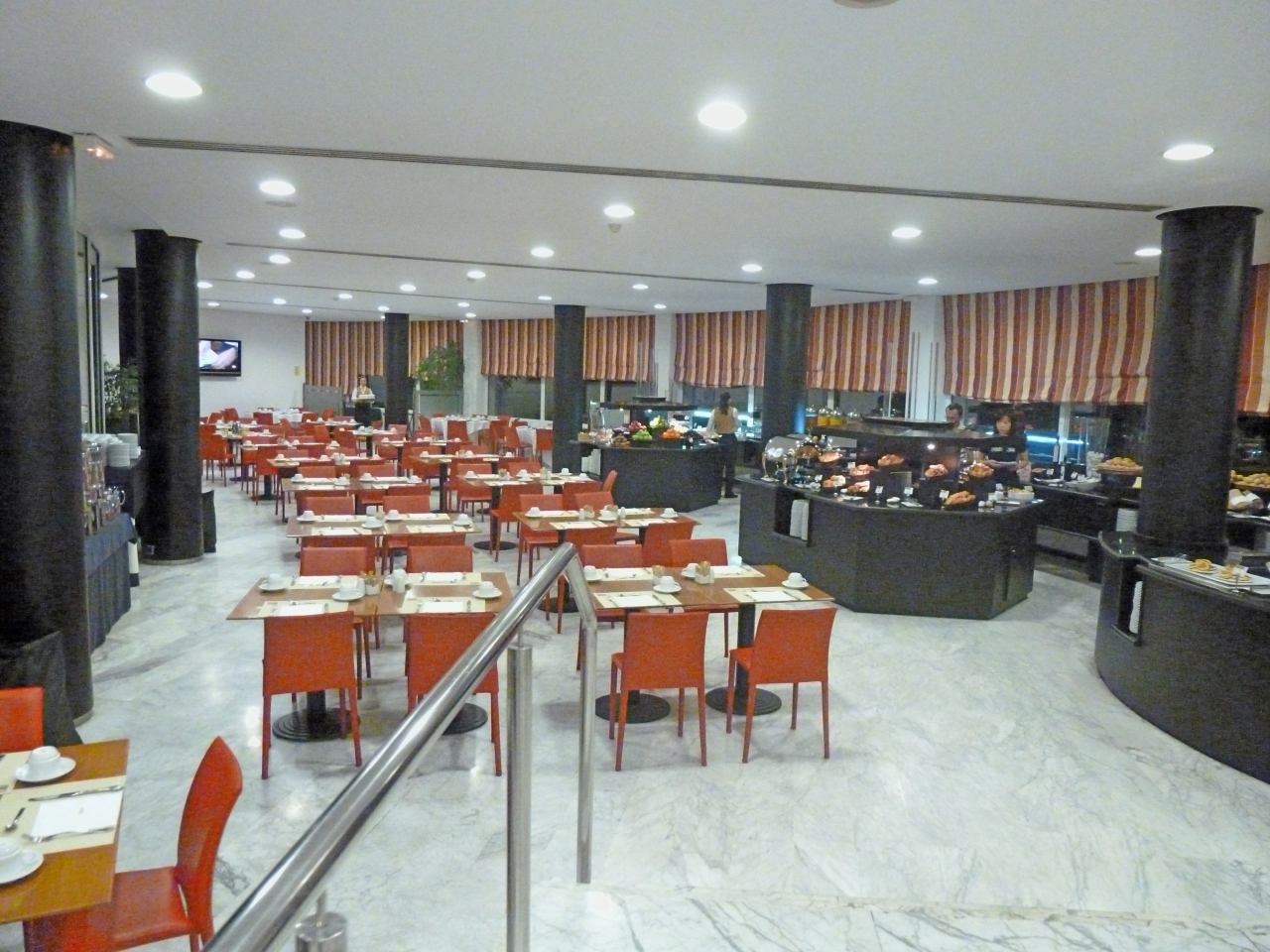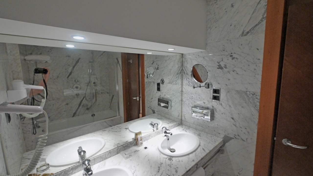 地下にある駐車場に入れたが,駐車料なんと一日15ユーロ.巨大な3つのビルの郊外のホテルだし,万博に使われたと聞いていたので,広大な駐車場があると思っていた.周りの道路には車がいっぱい停車,地下駐車場は半分程度しか入っていない.巨大なホテルなので,車で来ている人はたくさんいると思うが,ほとんどが野外駐車なのだろう.