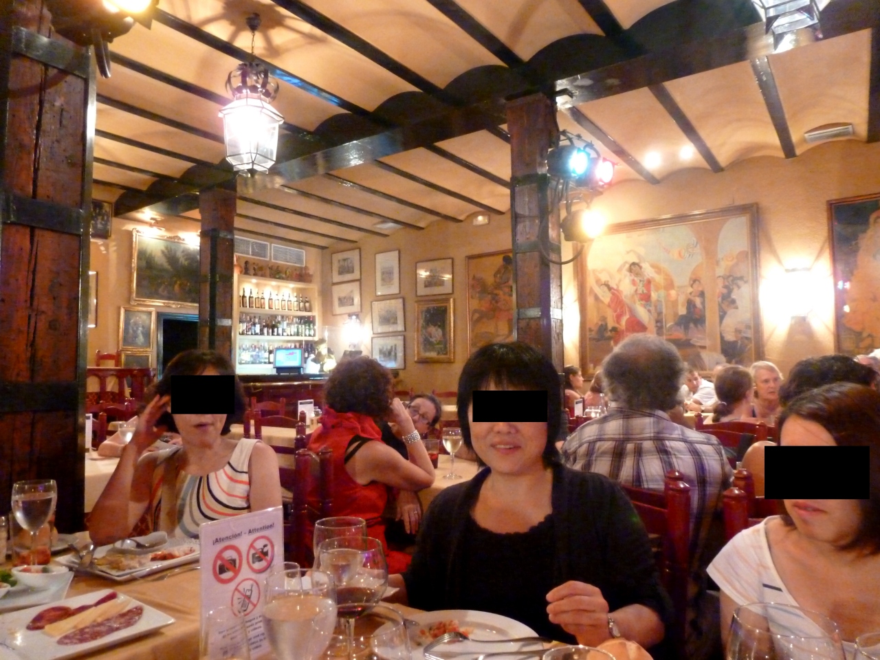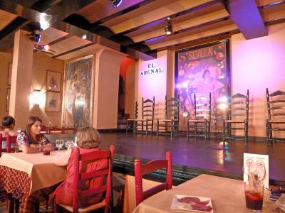 フラメンコのタブラオ.2000と2200の2回ショーがある.食事つき72ユーロ.ワイン,アルコールも飲み放題で食事もまあまあ.写真を撮るのは禁止.フラメンコは迫力あり最高!鬼気迫るものがあった.日本でもフラメンココンサートに行ったが,スペイン人の体格と風貌とフラメンコは良く似合う.すごい!おもしろいのは9時30分に舞台がはねたあと,すぐにダンサーは着替えて町中に.22時までにもう一度講演があるのに,どこにいくのだろう.しかしこのときダンサーを捕まえるのは可能と思う.なおタクシーを呼んでと言ったら,表通りにたくさん来ていると読んでくれなかった.近くの通りまで行くので夜間は注意のこと,結構いっぱいになるので予約が無難.ホテルで予約できる.