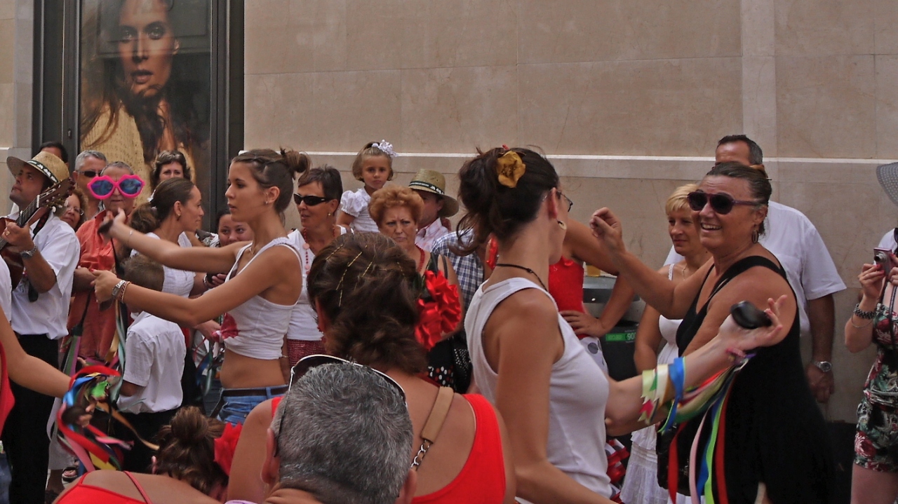 Malagaのメインストリートがお祭りになる.人ごみはすごいが,ここかしこで踊りもあり,楽しい雰囲気.8月にMalagaに行くならば,ゆっくり時間をとって楽しむとよいと思う.私たちは忙しい旅だったので十分満喫できなかった.http://www.andalucia.com/festival/malaga-feria.htm