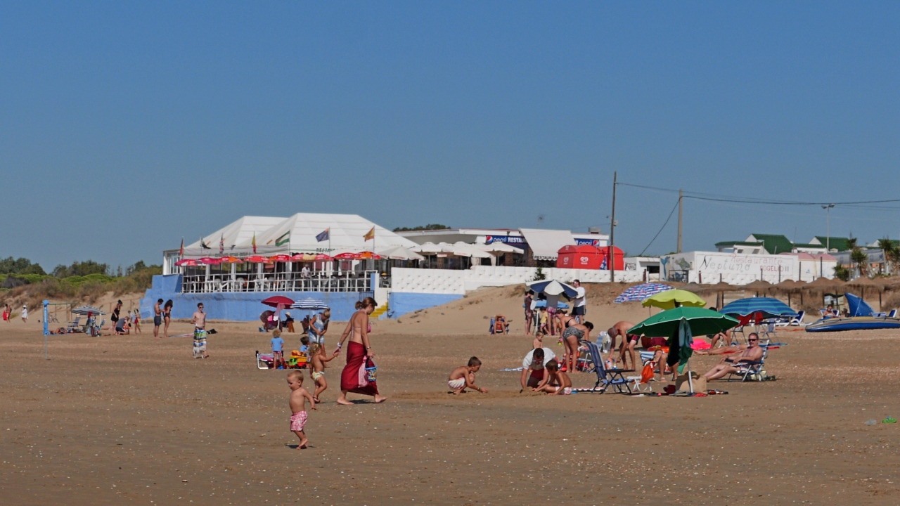 ポルトガル国境にほど近い,スペインの海岸 La Antilla. 目の前に広がる海は,ジブラルタル海峡より西なので,大西洋.気温もアンダルシアとしては高くなく,海もきれい.比較的人も少なく,無料駐車場もあり,泳ぐには最適なところ.レンタカーでLepeをめざし,その先の海岸になる.ホテルも結構あった.無料駐車場はIslantilla通りを西に突き当りを左折して,海岸べりに出るとある.