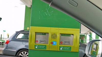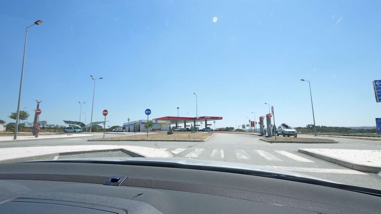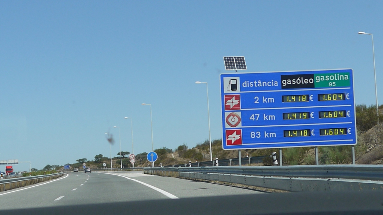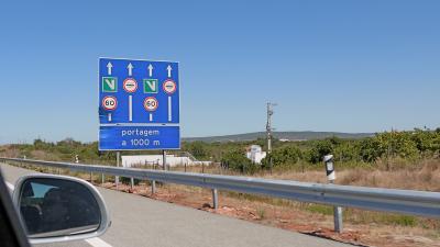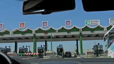 ポルトガルの高速道路の制限時速は120kmで,道幅も広く運転しやすい.標識もわかりやすい.南のA22号線は無料だったが,その他はほとんど有料.200kmで20ユーロと日本よりは安い.入口はVと書いてあるのがETCと同じもの.ほとんどのブースは自動精算機にユーロ札をいれて,おつりと領収書をもらう.大きい料金所だと人のいるブースもある.