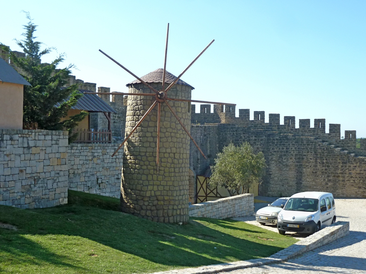 オビドスの観光案内にはポザーダ ド カステロとしか書いて無く,前回来たときは見逃した城跡に入ることができた.中は演劇をやる舞台や風車もあるが,歴史ある城跡と,高い城壁,そしてObidos駅も含めた周りの絶景を楽しめる素晴らしい場所だ.おすすめ!入場無料!