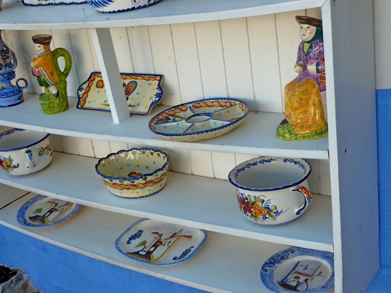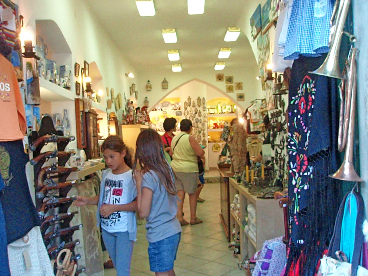 ポルトガルで短時間にいろいろなお土産を買うのならこのObidos,Direita通りが一番便利と思う.小さなお土産屋からおもちゃ屋まである.陶器や網かごが特産だが,ばらまき用のおみやげも多数手に入る.Lisbonより若干安いと思うし,通りに凝縮しているのでウィンドショッピングするだけでも楽しい!私たちはほとんどのお土産をここで買った!