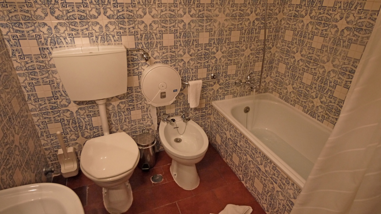 一泊シングルで11000円,アップルホテルでは満室でオクトパスで予約した.2009年の際とても気に入ったで今回は同僚と後輩を連れてきた.前回の部屋より眺望は良く,すばらしい.僧坊を改造したレストランはまさに修道院の雰囲気.朝食は三つ星ホテル並みだが,雰囲気は最高!!値段の割によく絶対おすすめのホテル.バスルームはアズレージョが貼られている.
