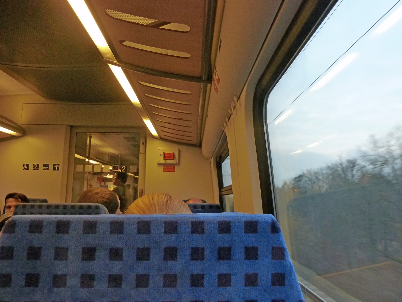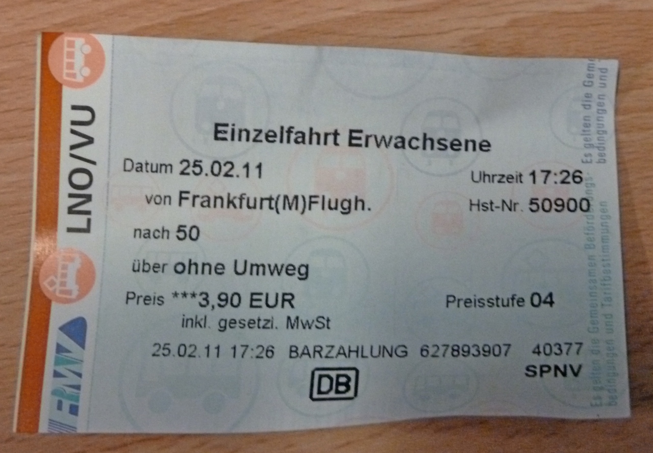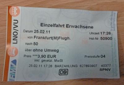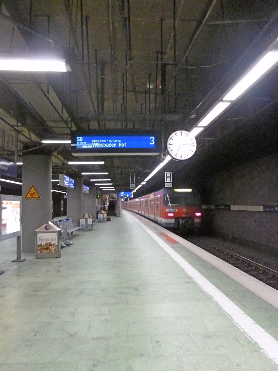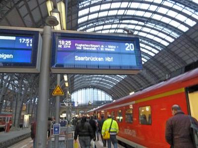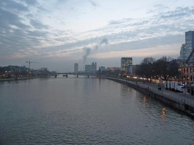 フランクフルト空港からはS-bahnが中央駅まで15分弱,少し先のHauptowache駅で降りても良い.そこからレーマー広場やマイン川の河畔はすぐのところ,中央駅から徒歩15分,Hauptowache駅から7ー8分,現地に1時間以上いても空港までの往復で2時間見ておけば十分.S-bahn以外にも長距離列車はあるがホームが異なり不便.頻繁にあるS-bahn,空港行きは飛行機のマークがありすぐわかる.空港で時間つぶすのもいいが,外に出るのも気持ちがいい.片道3.9ユーロ.
