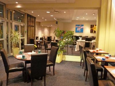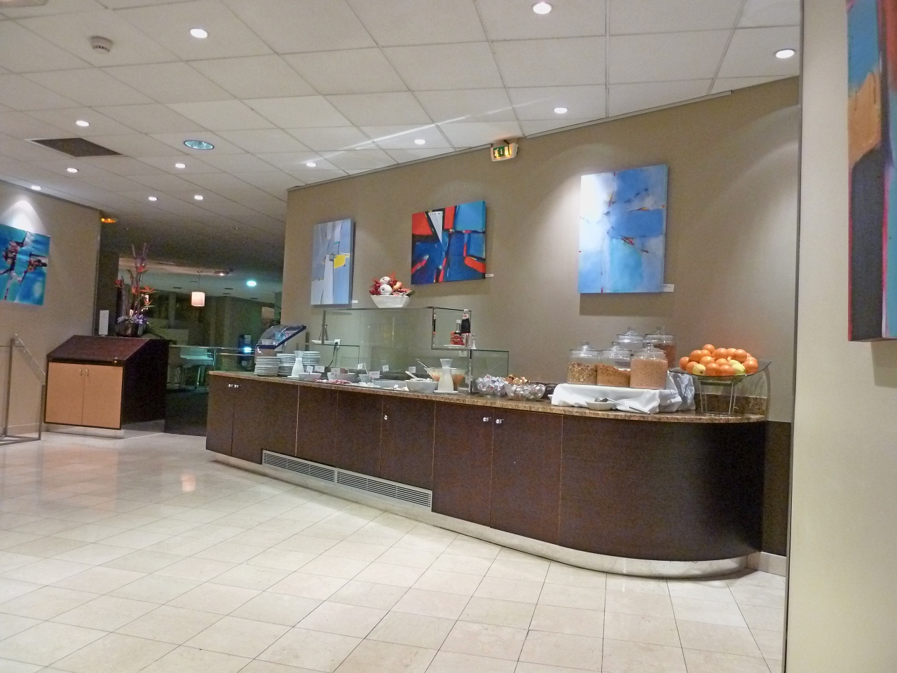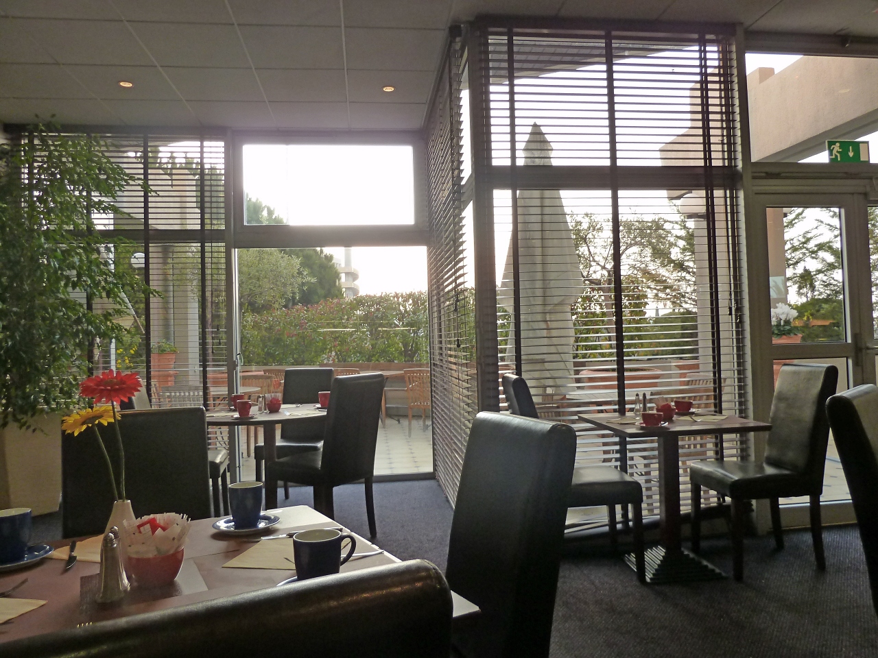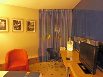 私はスカンジナビア航空のマイレージで宿泊.市観光税4ユーロ弱のみ支払った.空港から歩いて4分(少し道がわかりにくいが空港の第一ターミナルからはよく見える.).空港には電話すればシャトルバスが迎えに来てくれる.部屋は広く,金庫もあり,使いやすい.残念ながらバスはないが,四つ星クラス.食事は若干簡素で三つ星の上の方.曽^セージはポークとチキンの2種類.私は空港着が深夜になったのでこの近さが助かった.ニースの町中からはバスで30分近くかかるのでお勧めしないが,日程上空港への近さが大切な場合ここは最高だ!外観は写真に撮らなかったが,http://www.parkinn.com/airporthotel-niceを参照すると良い,.