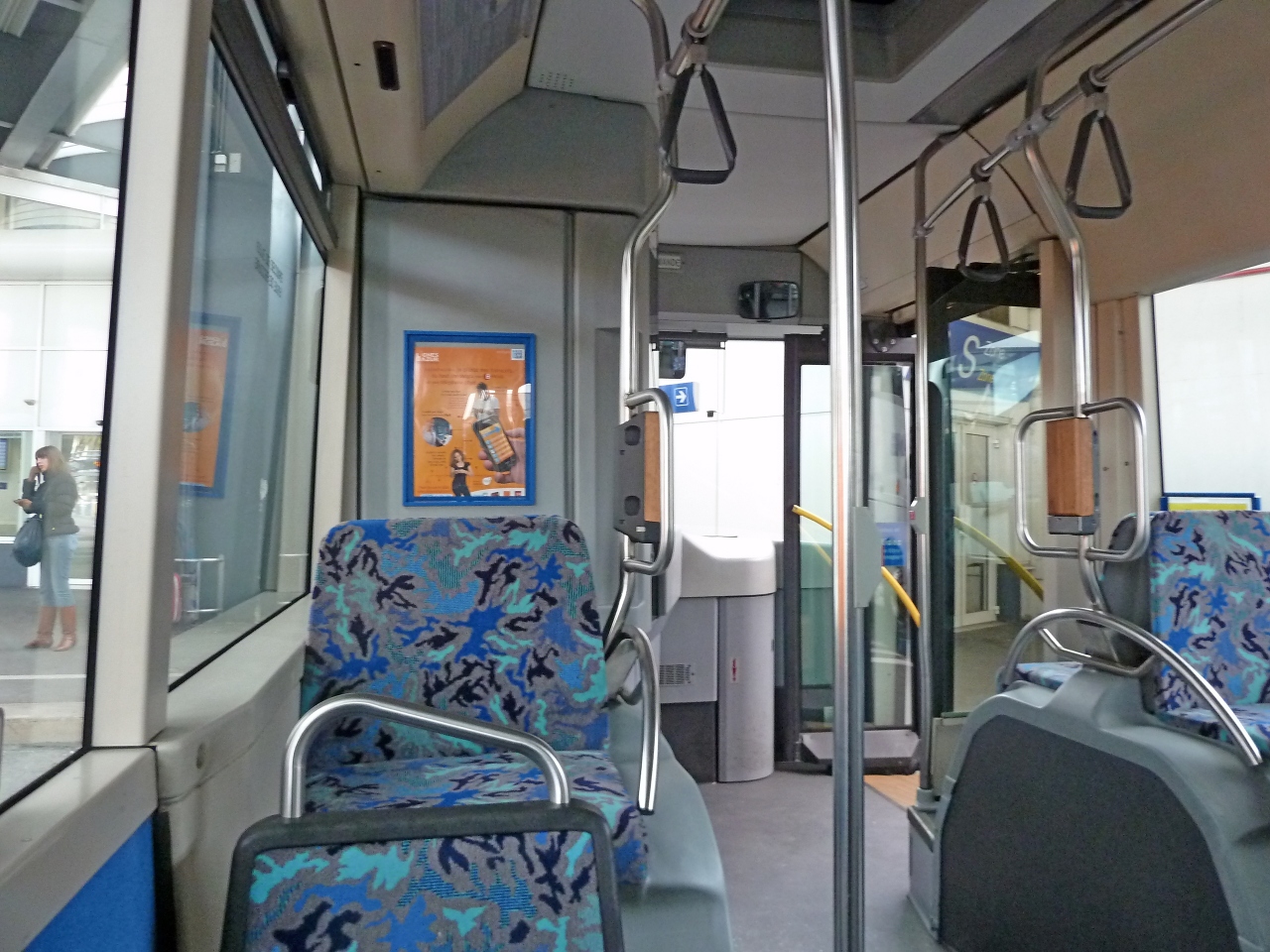 空港からのバスは20分おき,4ユーロの一日券付き.他に1ユーロのバスもある
